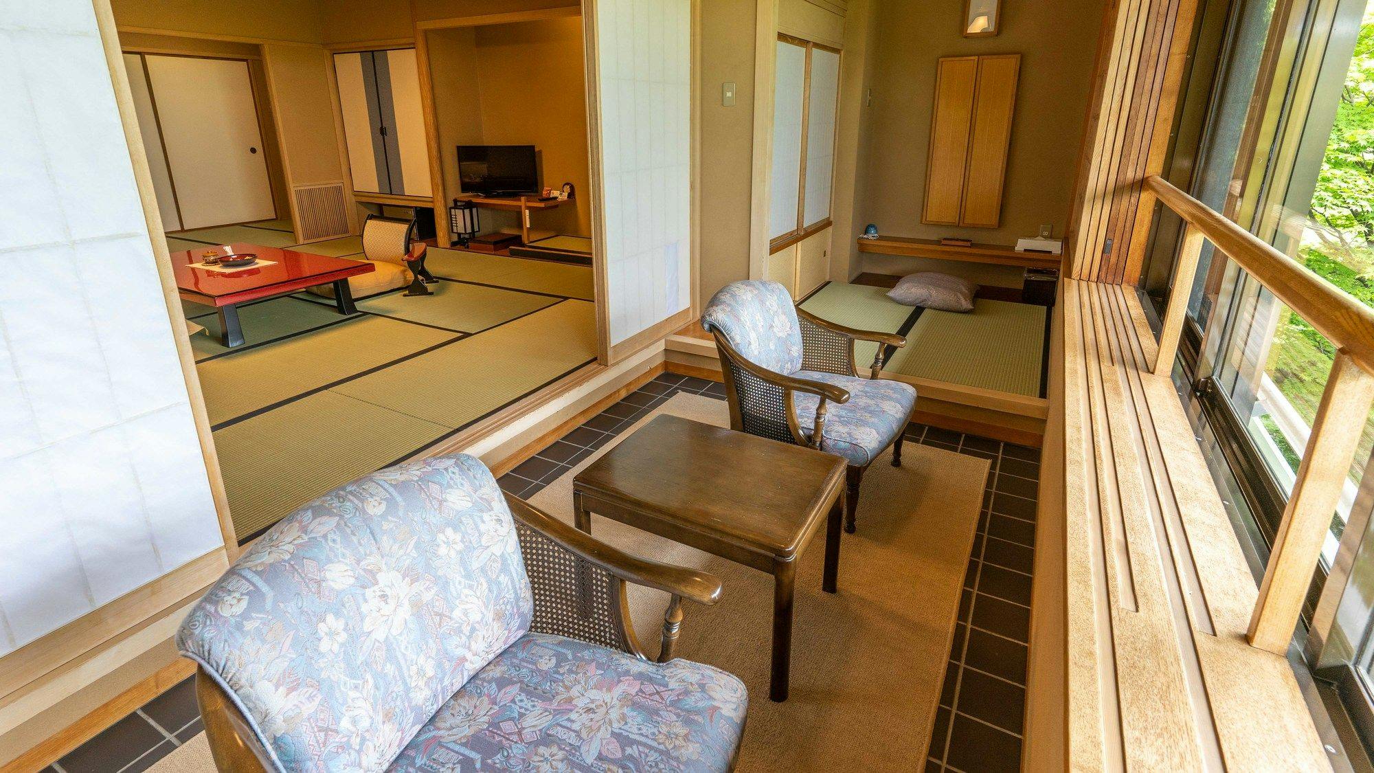 全室二間続き(次の間付)の贅をつくしたゆとりある空間です。