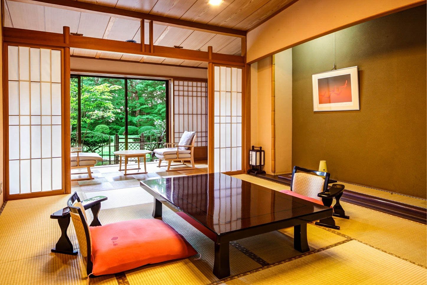 客室ごとに異なる床柱を用いるなど、格調ある純和風の優雅さが漂います。