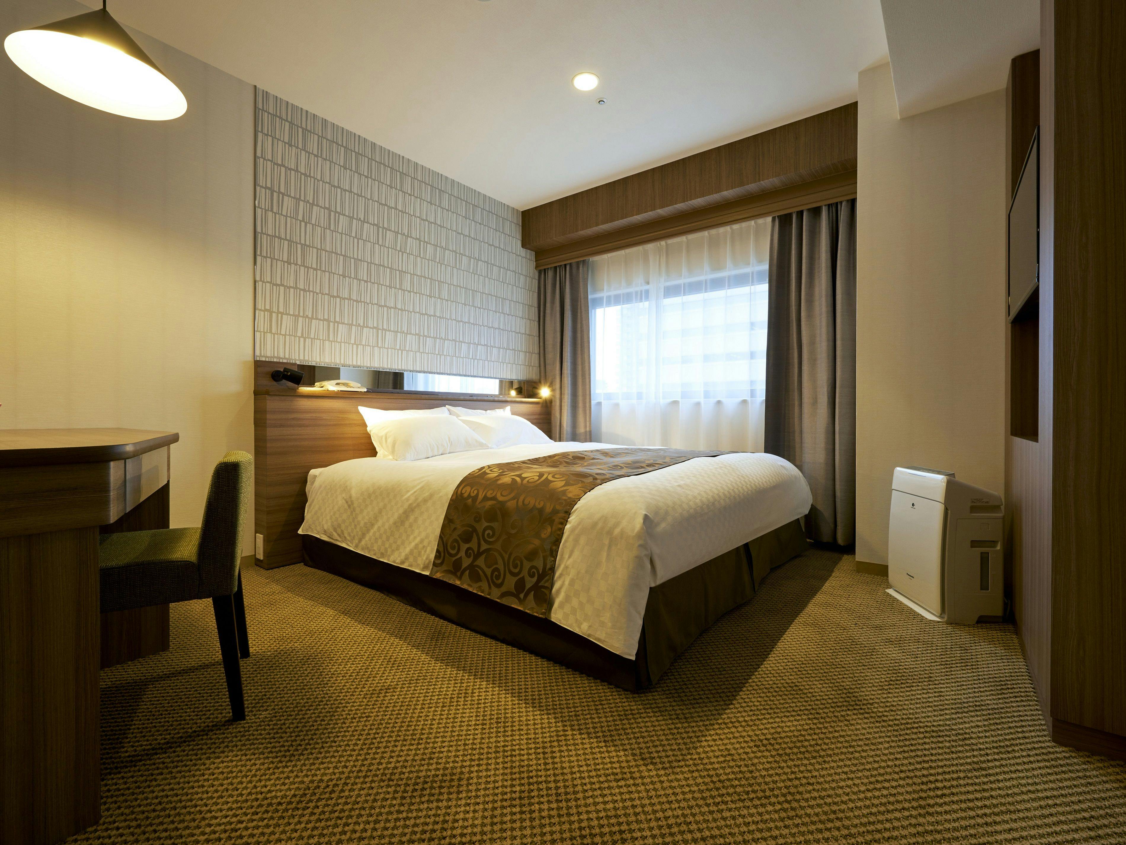 新クイーンサイズベッド使用、広々とした空間のワンランク上のダブル。■2017年リニューアル■角部屋■クイーンベッド(幅180cm)×1台■広さ21平米■32型液晶TV(壁掛け)