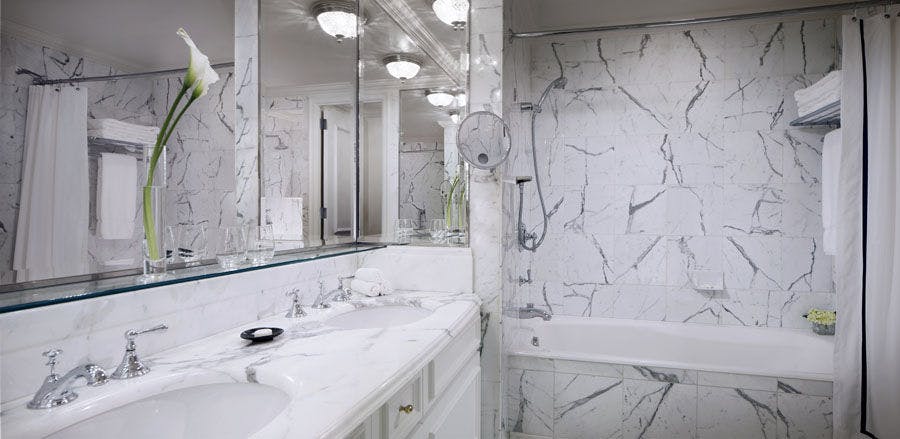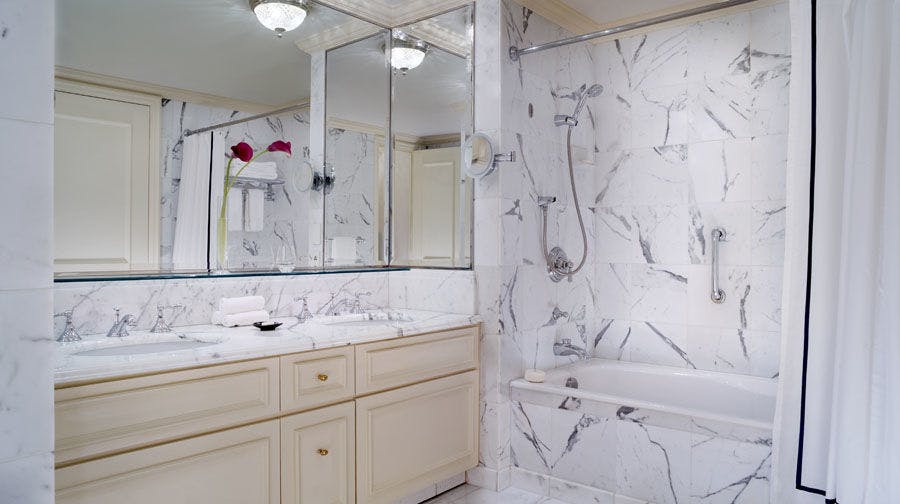 高層階33階~35階に位置し、市内を一望できます。バスルームはイタリア産大理石を用い、独立したシャワーブース、ダブルの洗面台、テリー織りのバスローブなど、インテリアからアメニティにいたるまで贅沢で優雅な雰囲気に統一されています。
