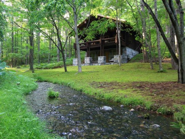 湖につながる小川と木々に囲まれる特別な2棟のコテージに