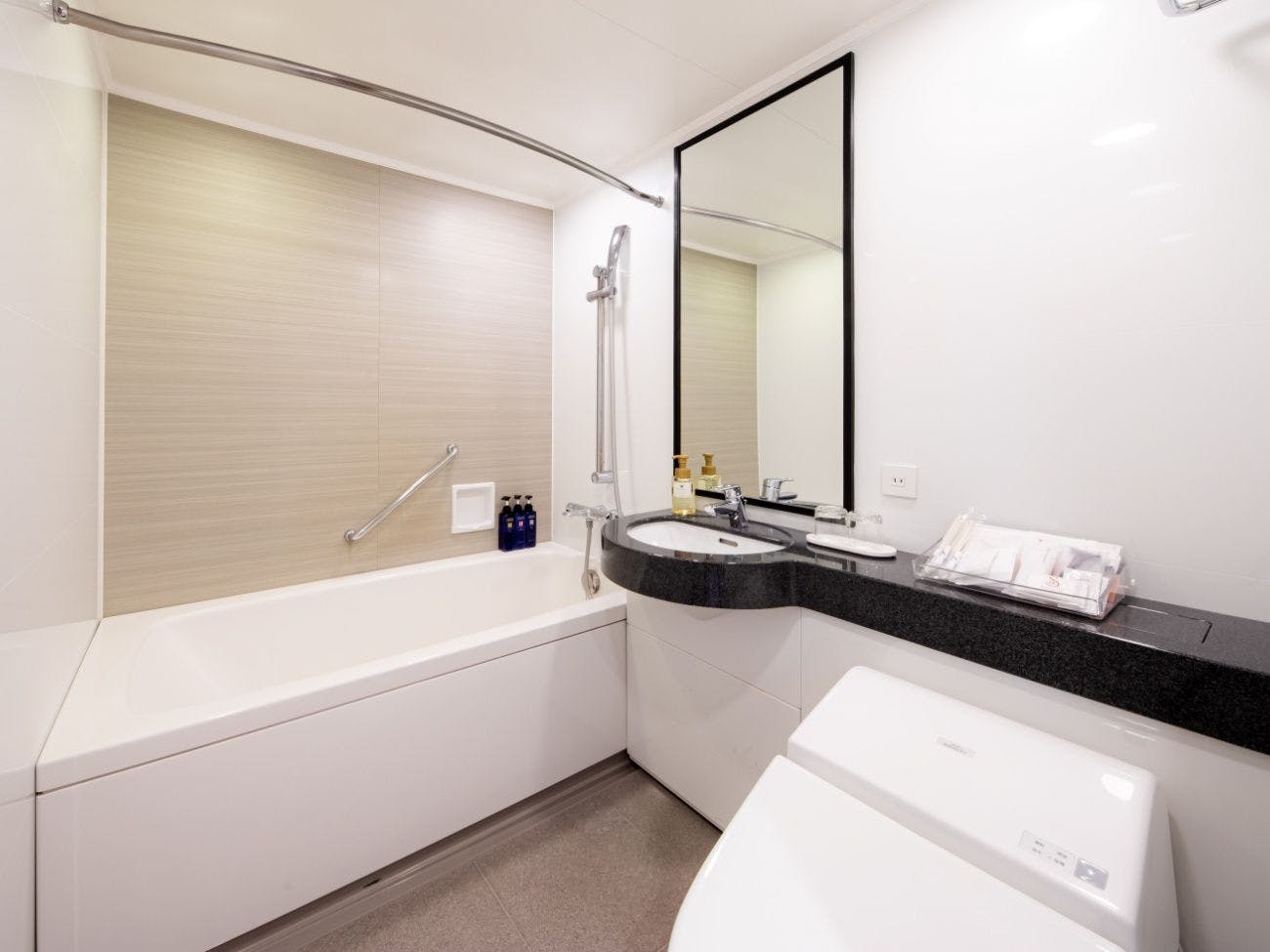 26平米のツインルーム。バス・トイレ・洗面台がそれぞれ別に備え付けの特に女性に嬉しいルーム。