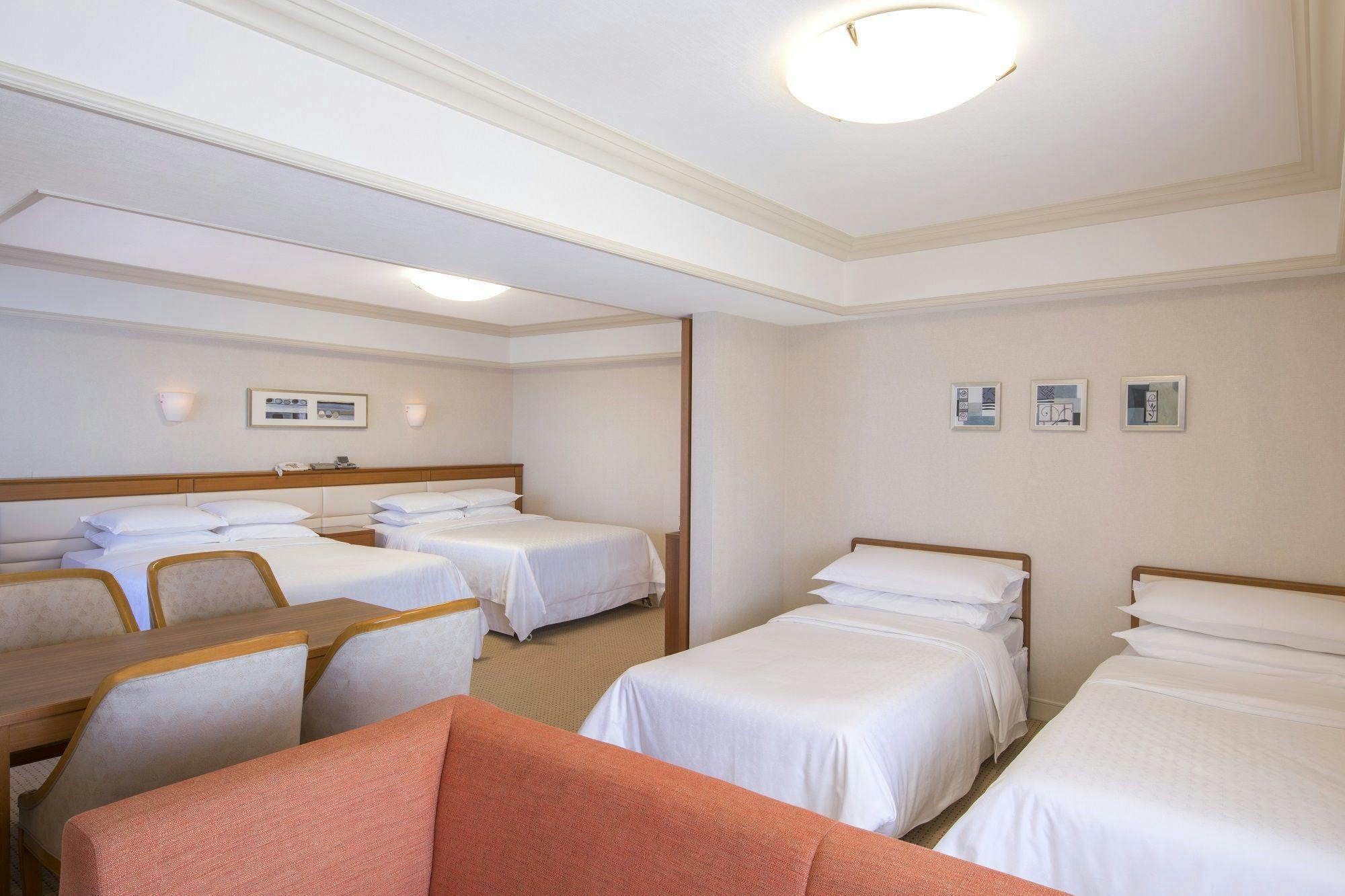 和紙の壁、陶器のアクセントなど和の落ち着いた雰囲気を活かしたスタイリッシュモダンなジャパニーズスイートは、ホテルにいながらまるで高級旅館の離れのような居心地。最大で大人6名様までお泊まりいただけ、琉球畳のリビングスペースなどの和洋折衷の空間は大人数でも快適にお過ごしいただけます。バスルームには洗い場と深めの日本式のお風呂を設置し、和の寛ぎと癒しのひとときを演出。またジャパニーズスイートご利用のお客様限定の専用浴場「ゆう裕」(無料)もご予約いただけます。さらにジャパニーズスイートにご宿泊の方は、無料の朝食やインターネットなどの多彩なシェラトンクラブ特典や、シェラトンクラブ ラウンジを自由にご利用いただけます。