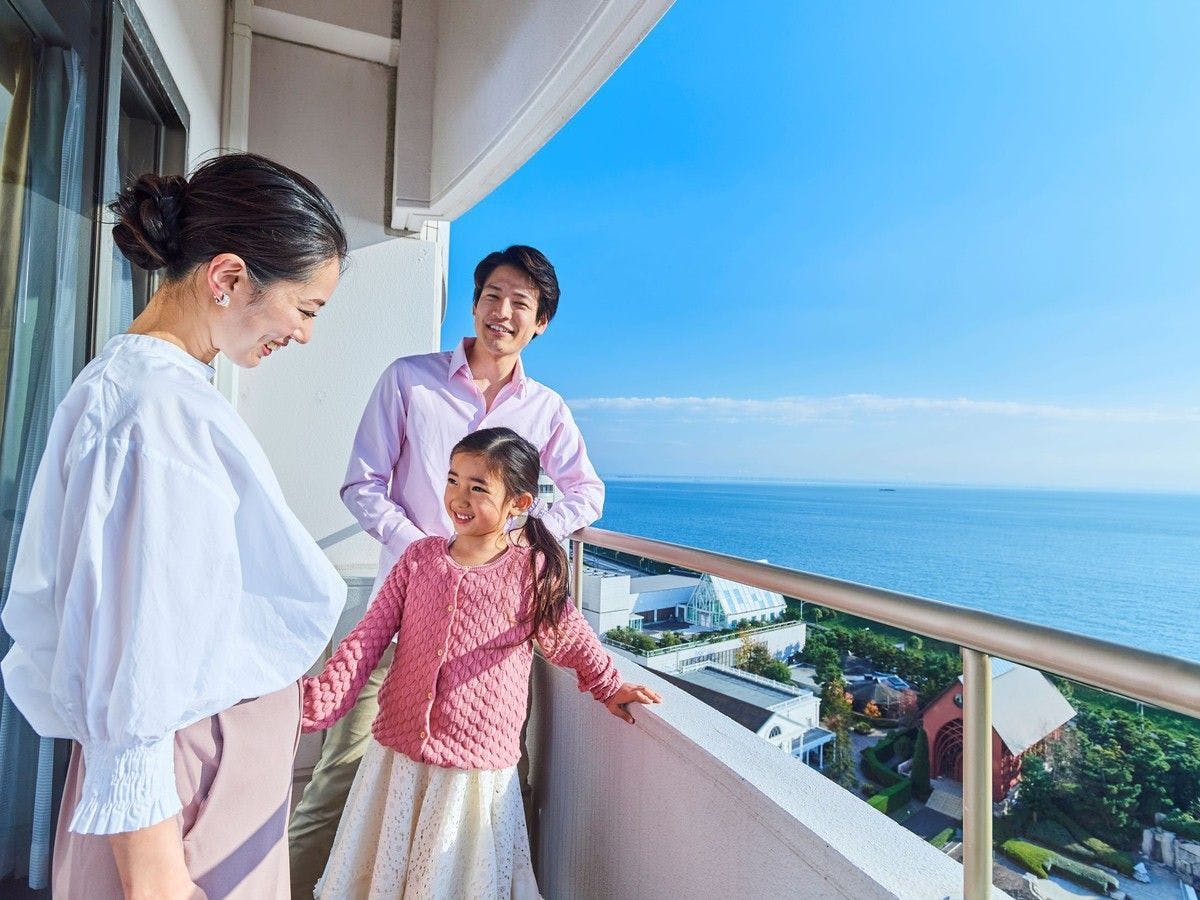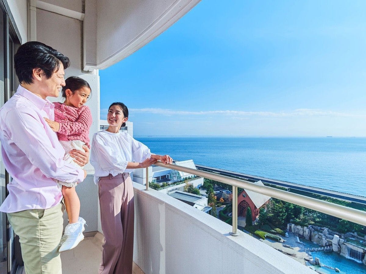 54平米のゆとりあるスペースで、大きな窓やバルコニー越しに見えるパークや東京ベイなどの眺めとともに開放感たっぷりのひとときをお届けします。最大5名までの宿泊が可能。グループやファミリーなどの宿泊におすすめです。