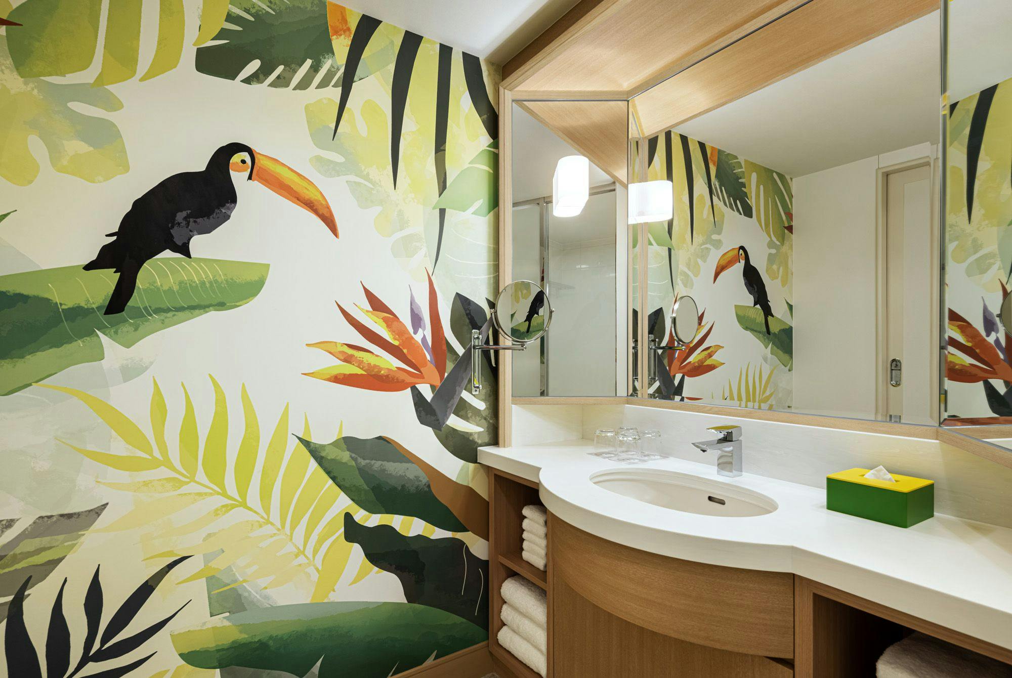 “ビーチサイドピクニック”をテーマにした客室には、窓から差し込む明るい光とさわやかに吹く風が心地よさを作り出し、ブルーやグリーン、イエローを基調としたカラフルな葉が散りばめられ、非日常を感じていただけます。