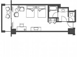 スタンダードタイプのお部屋で、8階の西側(国際会議場側)に設定がございます。