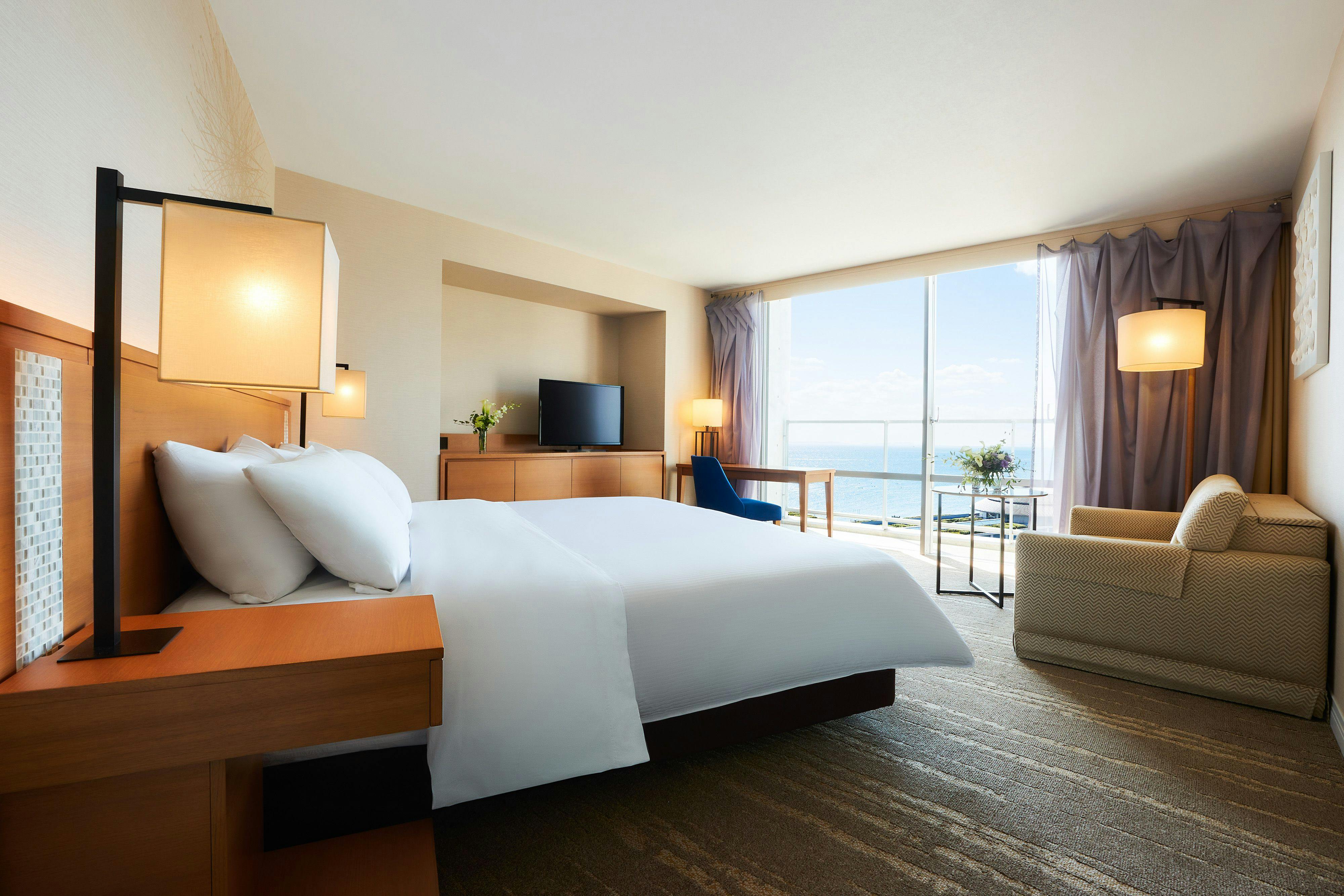 光があふれ、リゾートらしい開放感に満ちた室内。すべてのお部屋がバルコニー付きで、風を感じながらのひとときをお楽しみいただけます。パノラミックビューとは、人気の明石海峡公園側の8階以上確約の部屋タイプです。
