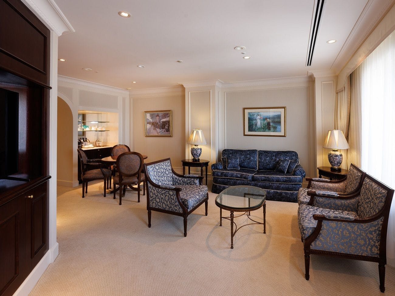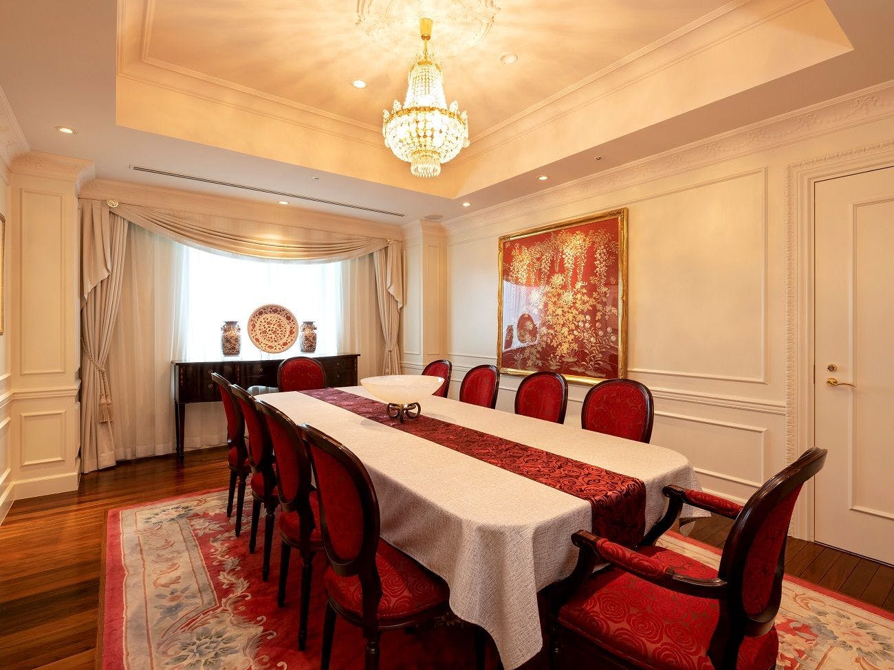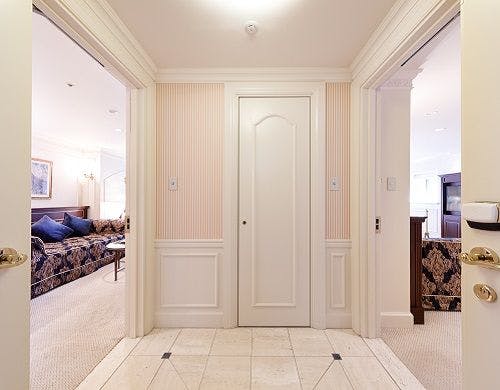 19・20階の特別階「プルミエールフロア」にあり、広々とした室内はゆとりある天井高に華やかさのあるインテリア。