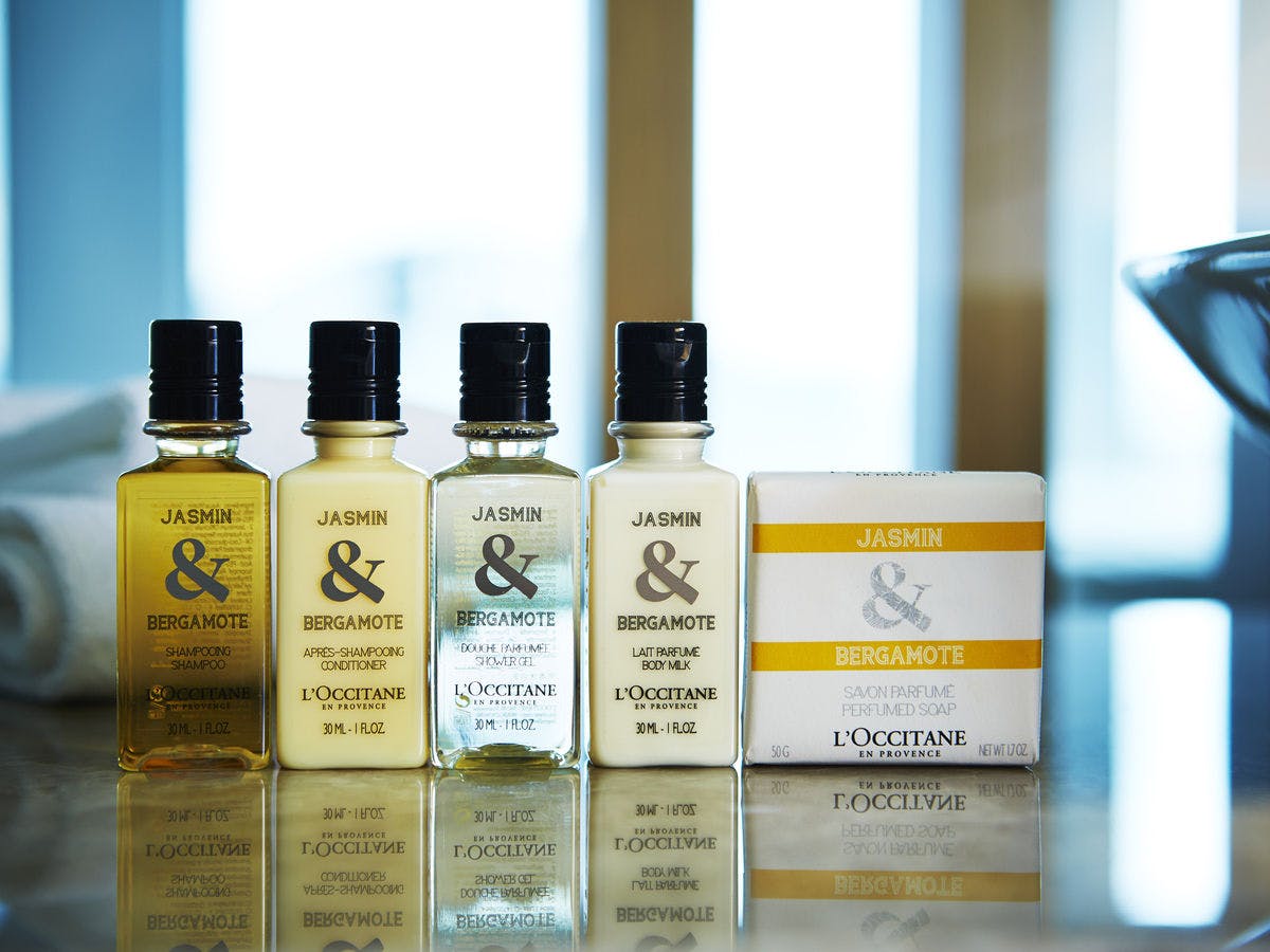 ○バスアメニティ・・・南仏ロクシタンの「ジャスミン&ベルガモット」。清楚で凛としたジャスミンといきいきとして爽快なベルガモットの異なる2種の香りが調和され、心と身体にエネルギーを与えてくれます。