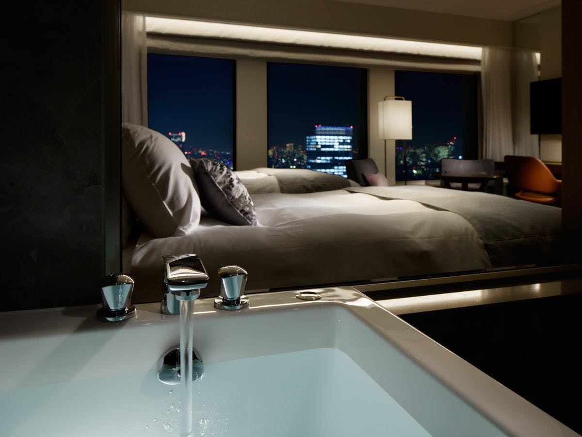○バスルーム・・・ロクシタンの香り立つアメニティと共に、都心の美しい夜景をお楽しみ頂ける開放的なバスルーム。