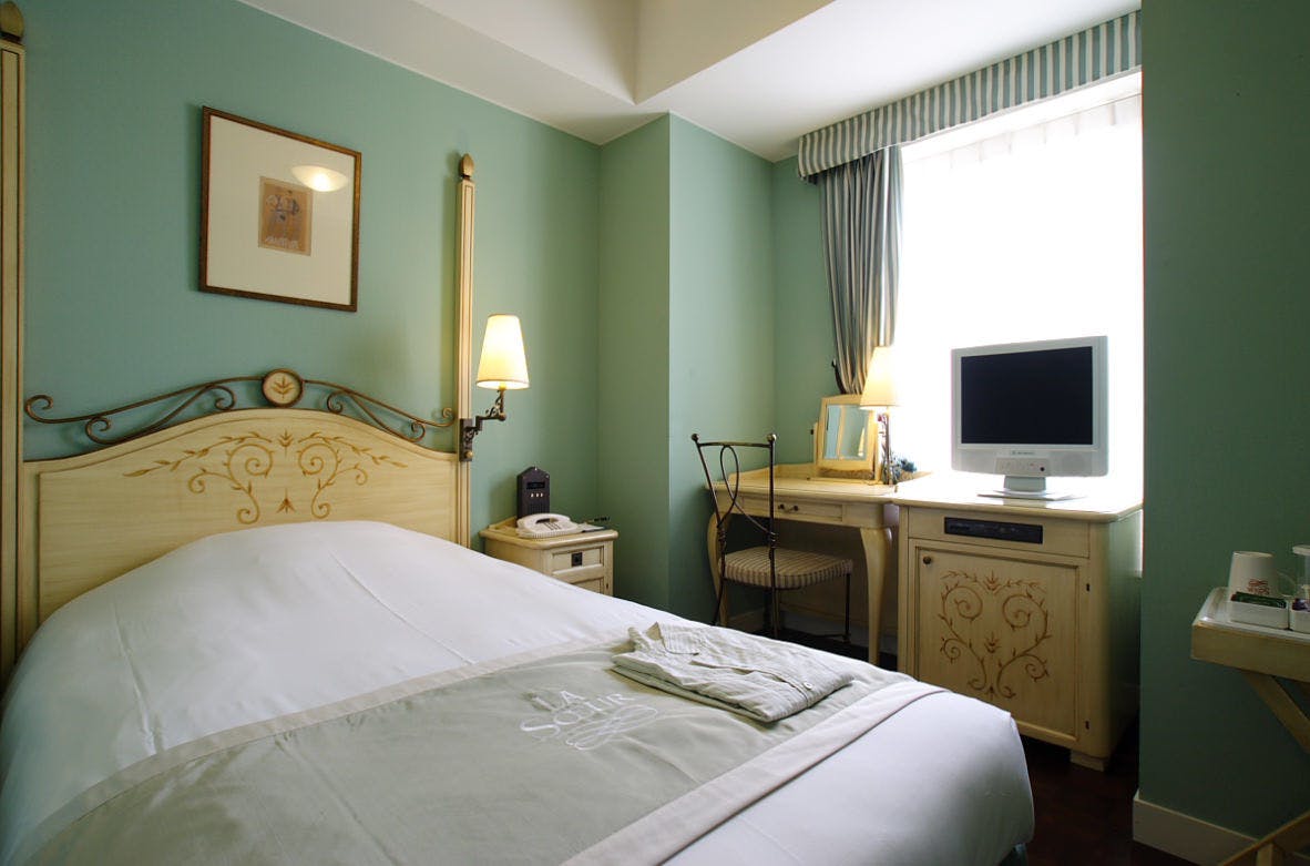シックでキュートなお部屋は、ビジネスや観光の拠点にご利用頂けます。ゆったりとした空間でおくつろぎ下さい。○広さ21平米○シモンズ社製ベッド(幅140cm)○高速インターネット接続無料○薄型液晶TV完備○マイナスイオンドライヤー完備○洗浄機付トイレ完備○加湿機能付き空気清浄機完備○まるで美顔器のようなシャワーヘッド「ミラブル」設置
