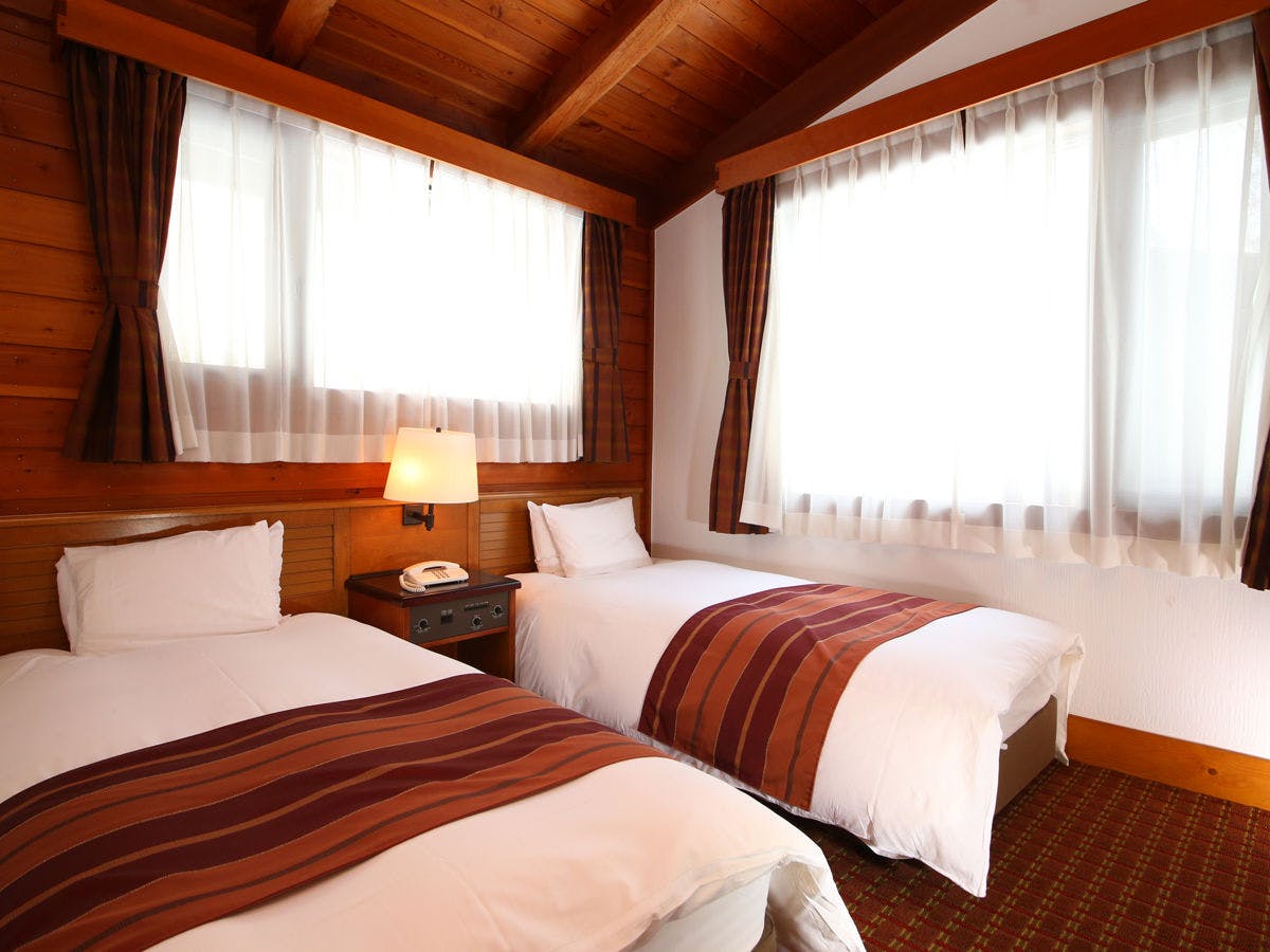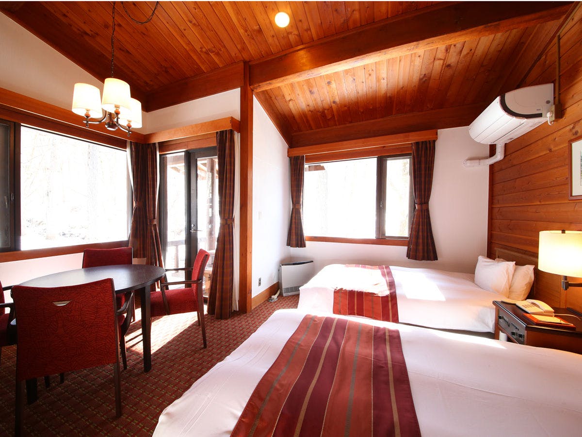 独立したコテージタイプなので、リラックスしたリゾートライフを楽しめます。プライベートな空間で小川のせせらぎが心地よく自然をより身近に感じることができます。<ツインタイプ>※ペットはお泊まりいただけません