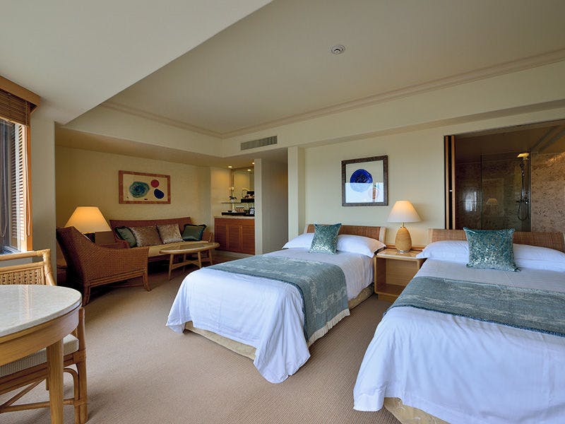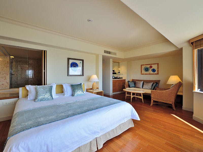 ベッドルーム越しに那覇のシティビューを望むといった演出をプラスしたスイートタイプのお部屋。至福に満ちた極上の空間で、穏やかに流れる優雅なひとときを満喫。極上の寛ぎと快適に満ちたご滞在をお約束します。