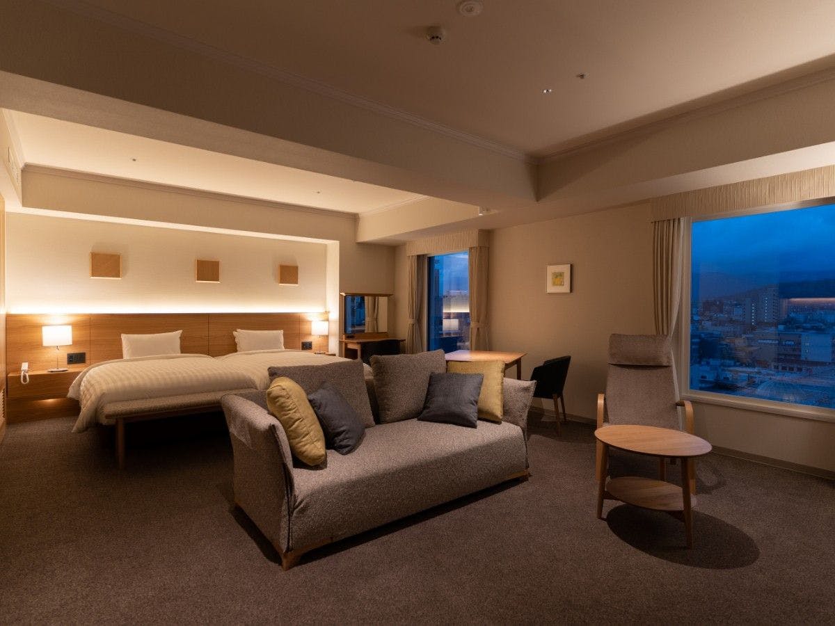 【オーセントスイート】は北海道産の家具を中心に設えた、清潔感のあるニュートラルデザインの空間となっております。