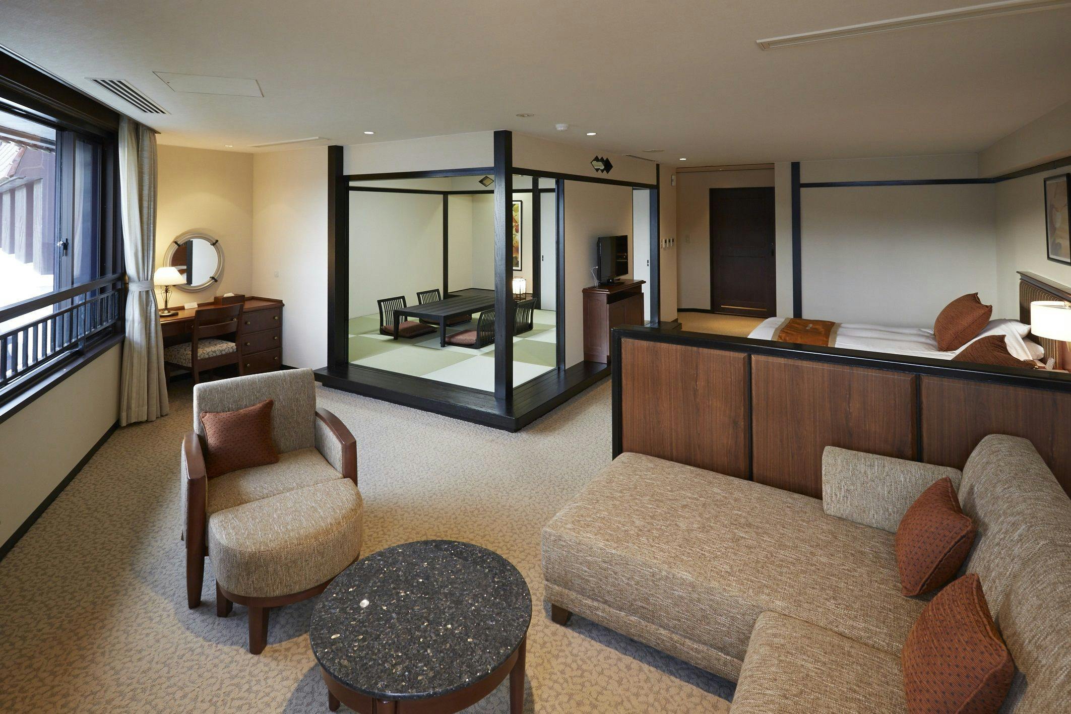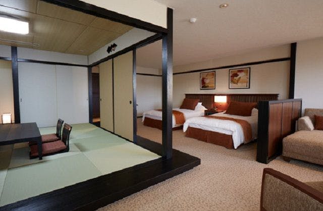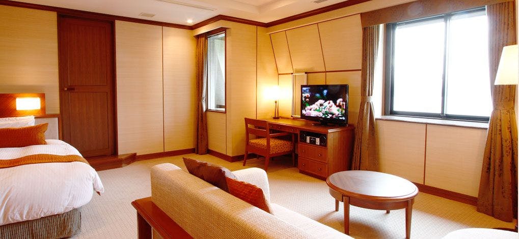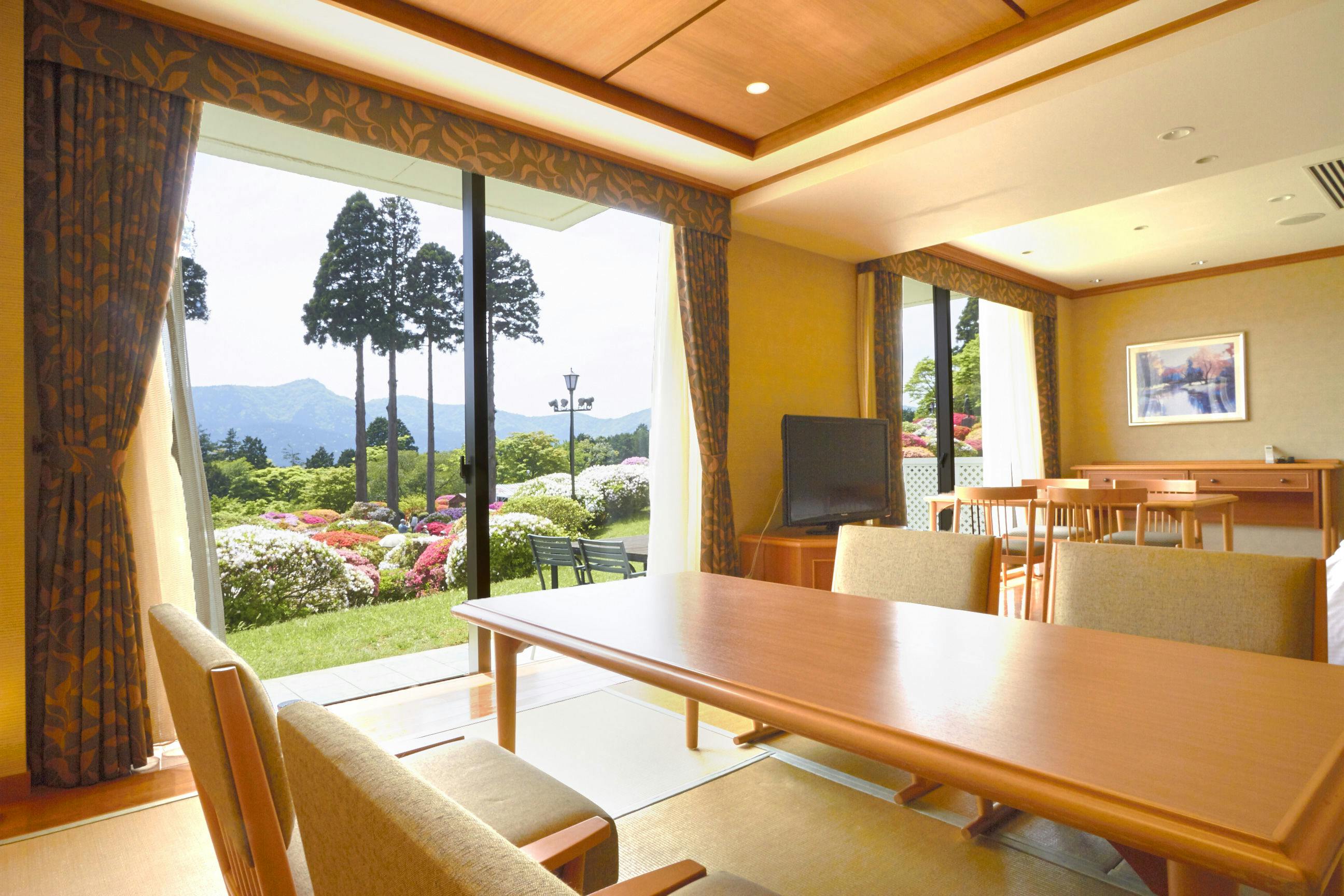 山のホテルのつつじ庭園に面した1階にある和洋室タイプのユニバーサルルーム。