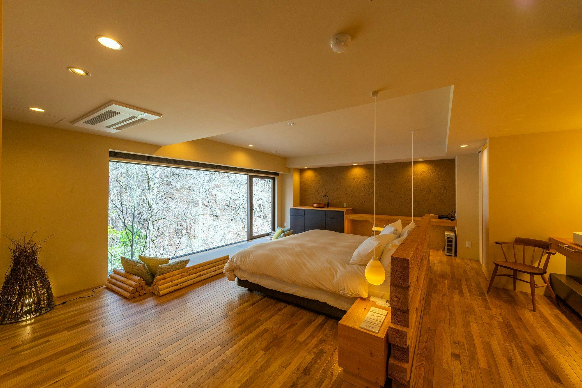 特に、然シリーズの中でも白樺は107平米のluxuryなお部屋で、露天風呂のあるテラスを含めると160平米。