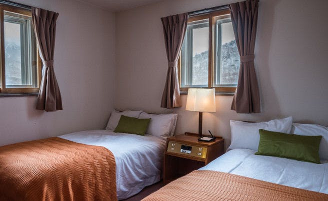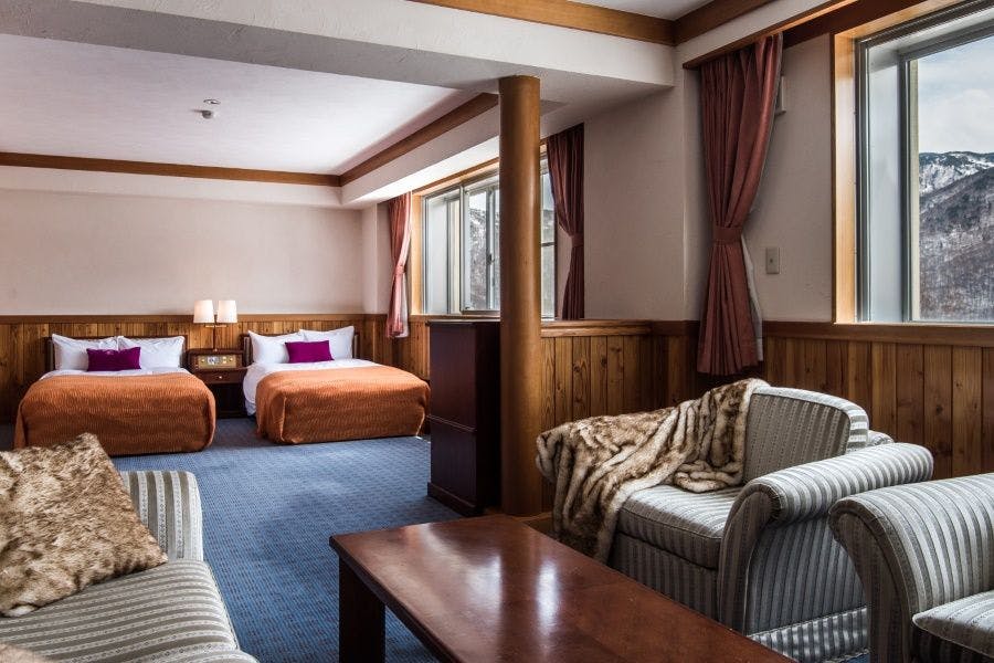 家族の大切な一員であるわんちゃんと一緒にお泊まりいただけるお部屋です。2台のベッドとソファーベッドを備え、2名から3名様でご利用可能。わんちゃん用のアメニティーもご用意してあります。