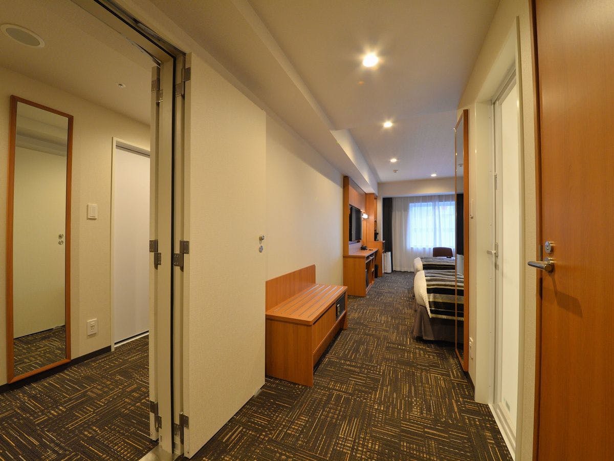 ・東館 ・広さ:49平米 ・ベッド幅:120cm 2台+エキストラベッド1台バリアフリーの広々49平米の客室は、どなたでも快適にお過ごしいただける空間です。・43型液晶テレビ・無料コーヒーマシン付き・全室加湿器付空気清浄機完備・インターネット接続無料(Wi-Fi接続のみ)