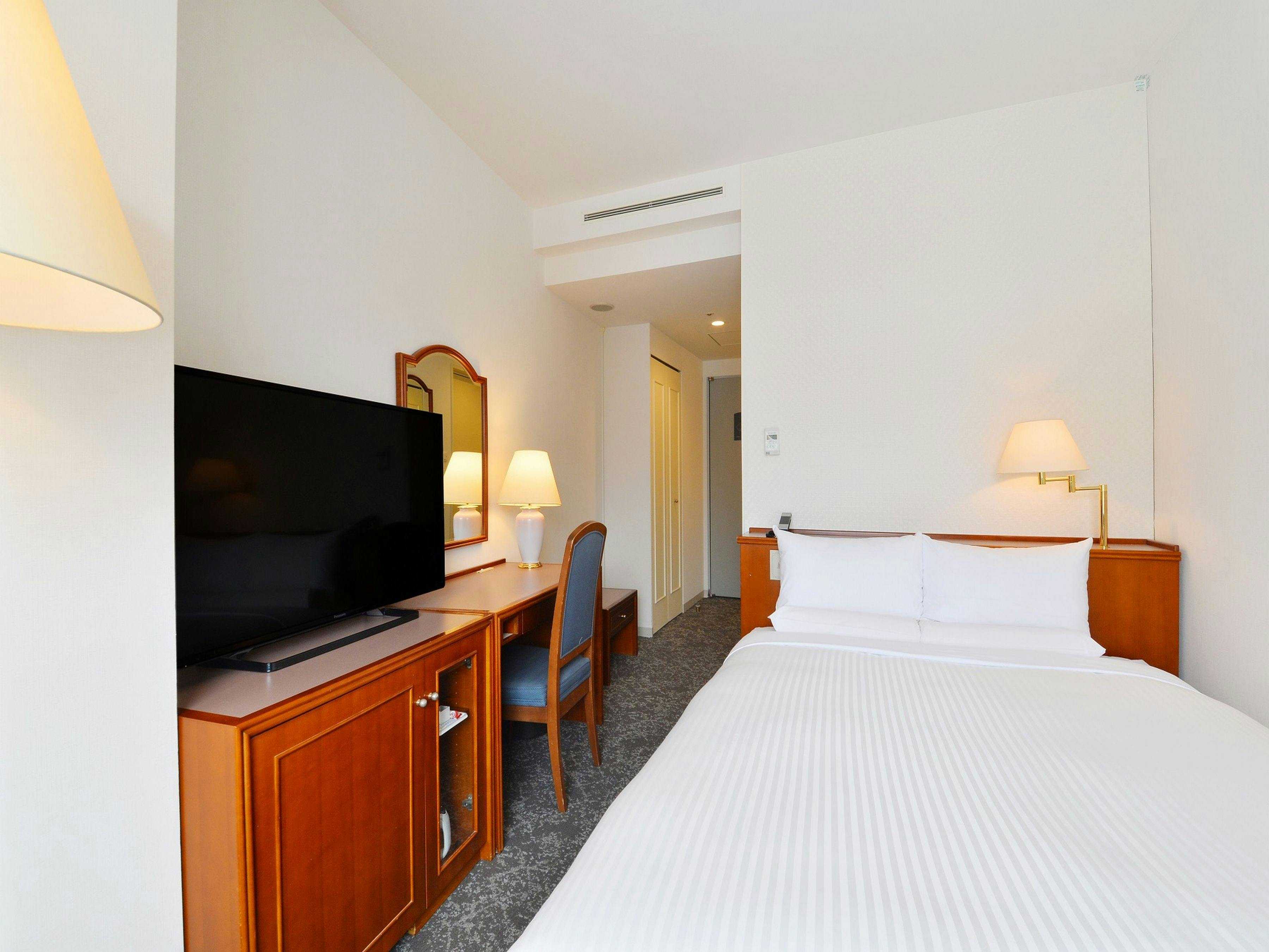 ・西館 ・広さ:19平米 ・ベッド幅:140cm 1台(エキストラベッド追加不可)客室内には落ち着いた色調の家具を配置。居心地の良い空間をご用意しております。・43型液晶テレビ・全室加湿器付空気清浄機完備・インターネット接続無料(Wi-Fi接続のみ)