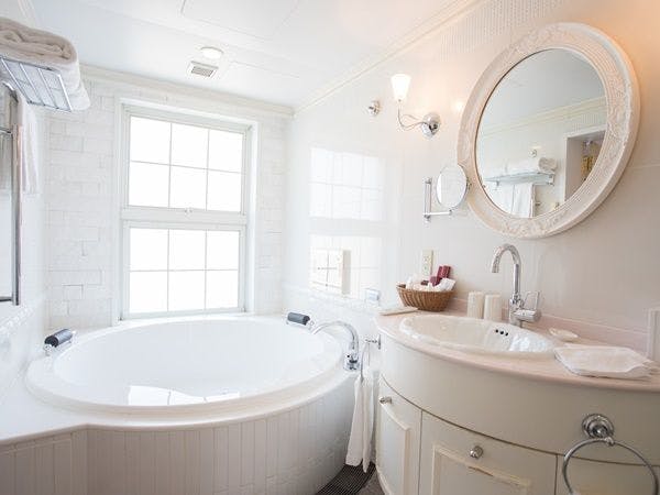 バスルームには大型の円形バブルバスを採用。日頃の疲れをゆっくりと癒せる空間となっております。あなただけに用意された充実の時間は、きっと素敵な思い出となって心に刻まれることでしょう。