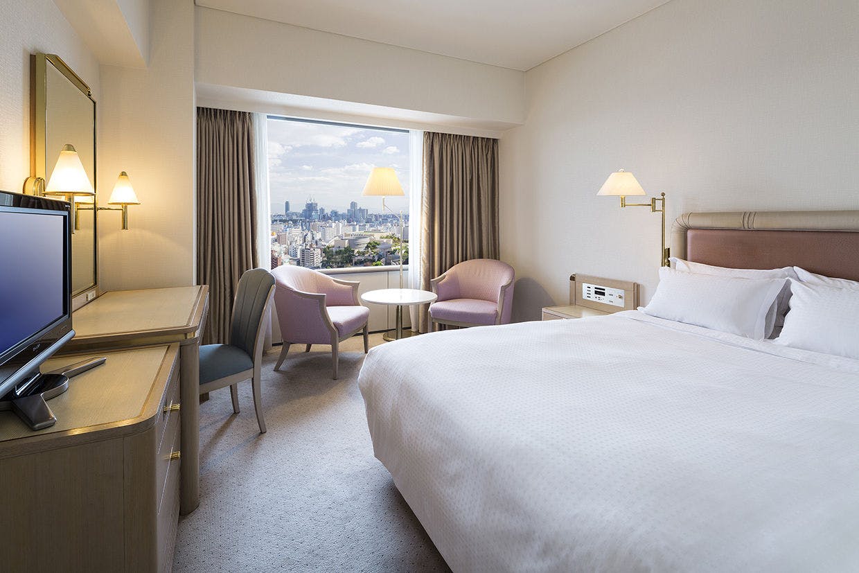 スイス エグゼクティブ ルーム キングは、洗練されたデザインに、格子戸など和のテイストを効かせたスタイリッシュなお部屋です。海外のお客様にも日本を身近に感じていただけます。