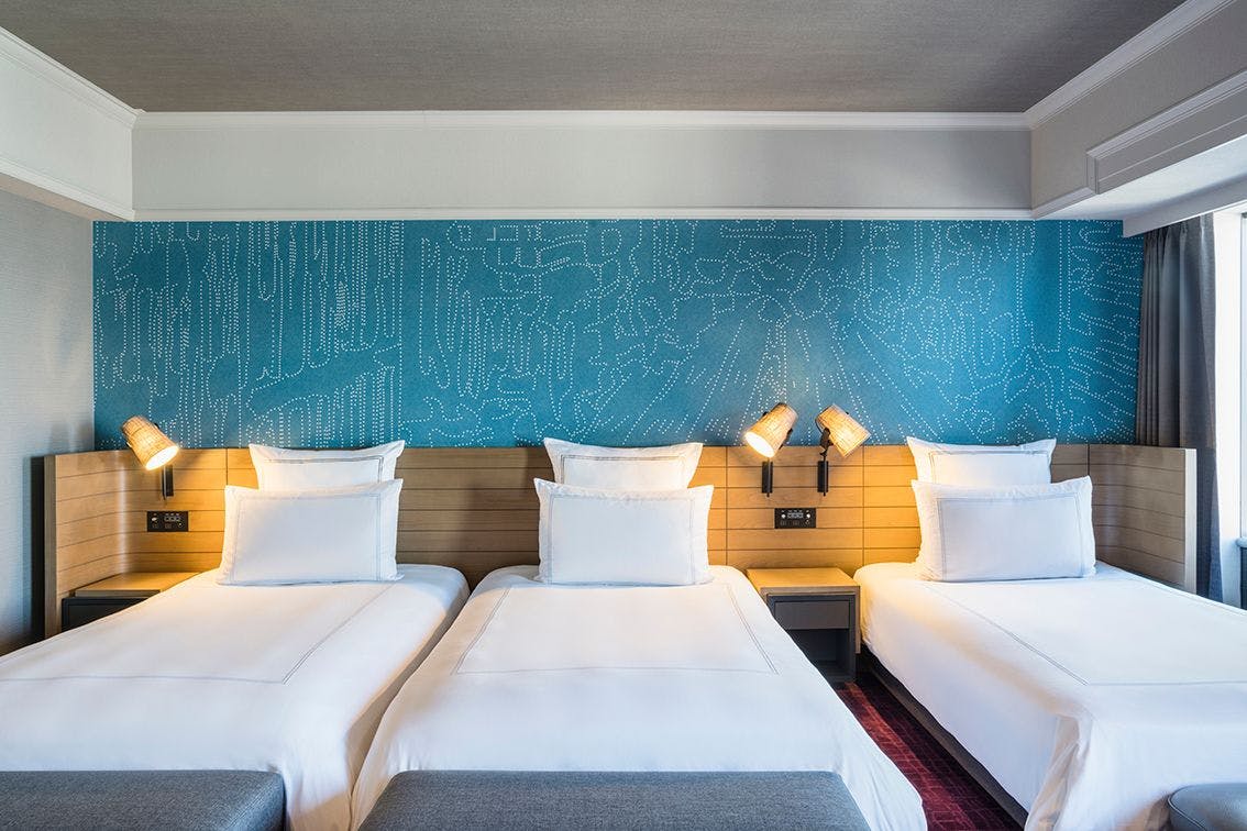 スイス エグゼクティブ ルーム トリプルは、3台のダブルベッドを備え、ファミリーやグループのお客様にもゆったりとおくつろぎいただけます。