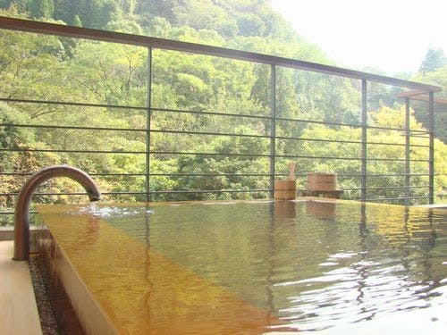 天降川渓谷沿いにある温泉旅館です。源泉100%のホンモノの温泉を野趣あふれる露天風呂で満喫できます。地元でとれた旬の食材を用いた料理も好評!