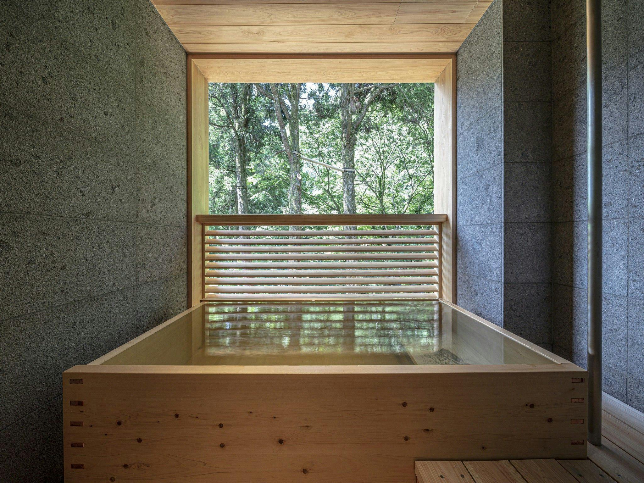 露天風呂の目隠しルーバーを開放すると、ダイナミックな景観が楽しめます。