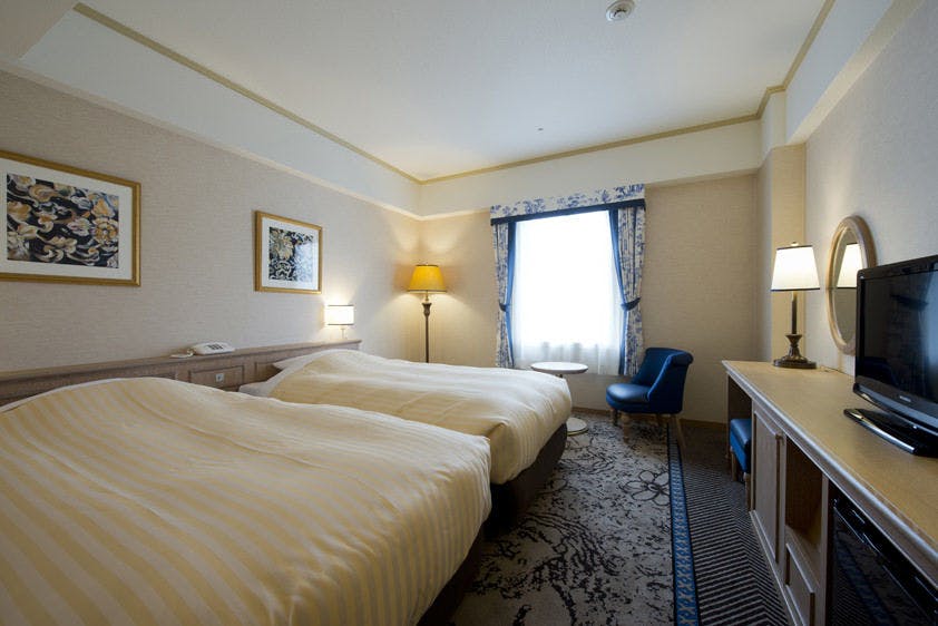 ホテル中庭に面した少し広めのツインのお部屋です。【禁煙】