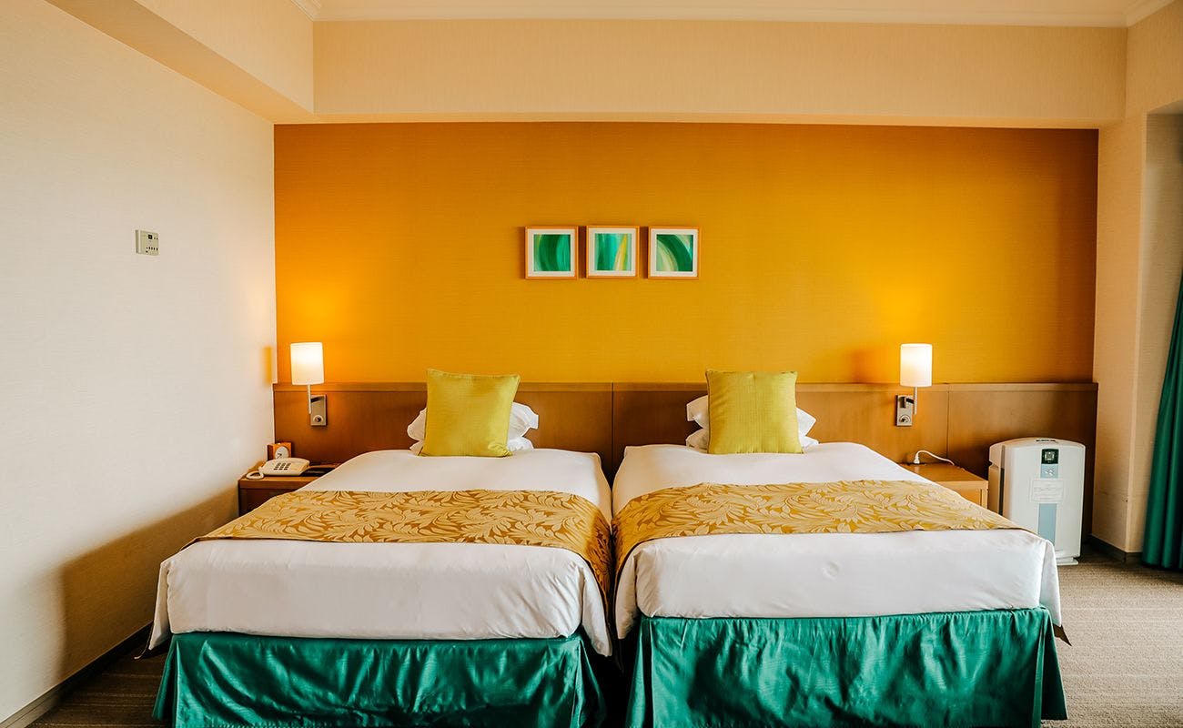 ■禁煙スーペリアツイン(コーラルウィング)イエローを基調とした明るいお部屋です。ベッドを追加して最大4名さままで宿泊可能なため、ファミリーやグループにおすすめです。※コーラルウィングは全室禁煙ルームとなります。