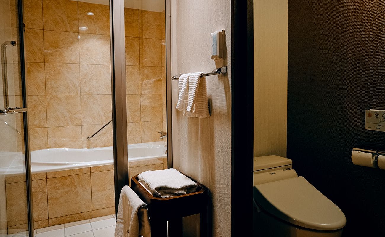 <オーシャンウィング・最上階(6階)>■禁煙デラックスツイン(オーシャンウィング)/オーシャンウイング最上階(6階)からの極上の眺めはもちろん、バス・トイレ別々、洗面台がセパレートされた水回りの良さも魅力です。与那覇前浜ビーチを見下ろす最高のひとときをお楽しみください。※2020年3月リニューアル