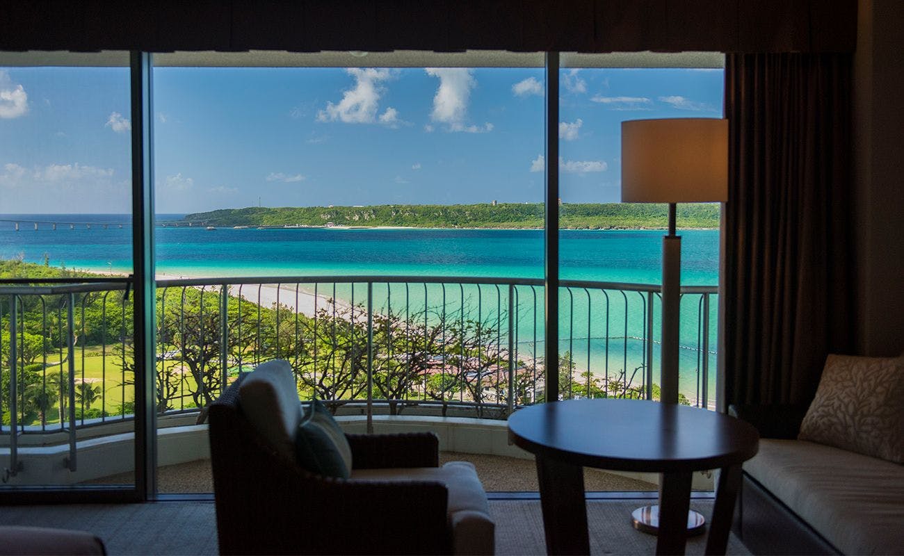 ■禁煙プレミアムツイン/ワイドビュールーム(コーラルウィング)ゆったりと寛いでいただける空間をコンセプトに、カップルからグループまで幅広くご利用いただけます。ワイドビューの窓からは、エメラルドグリーンの海と開放的な空をご堪能いただけます。※コーラルウィングは全室禁煙ルームとなります。