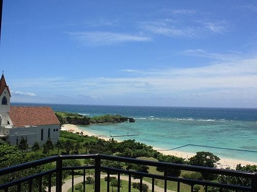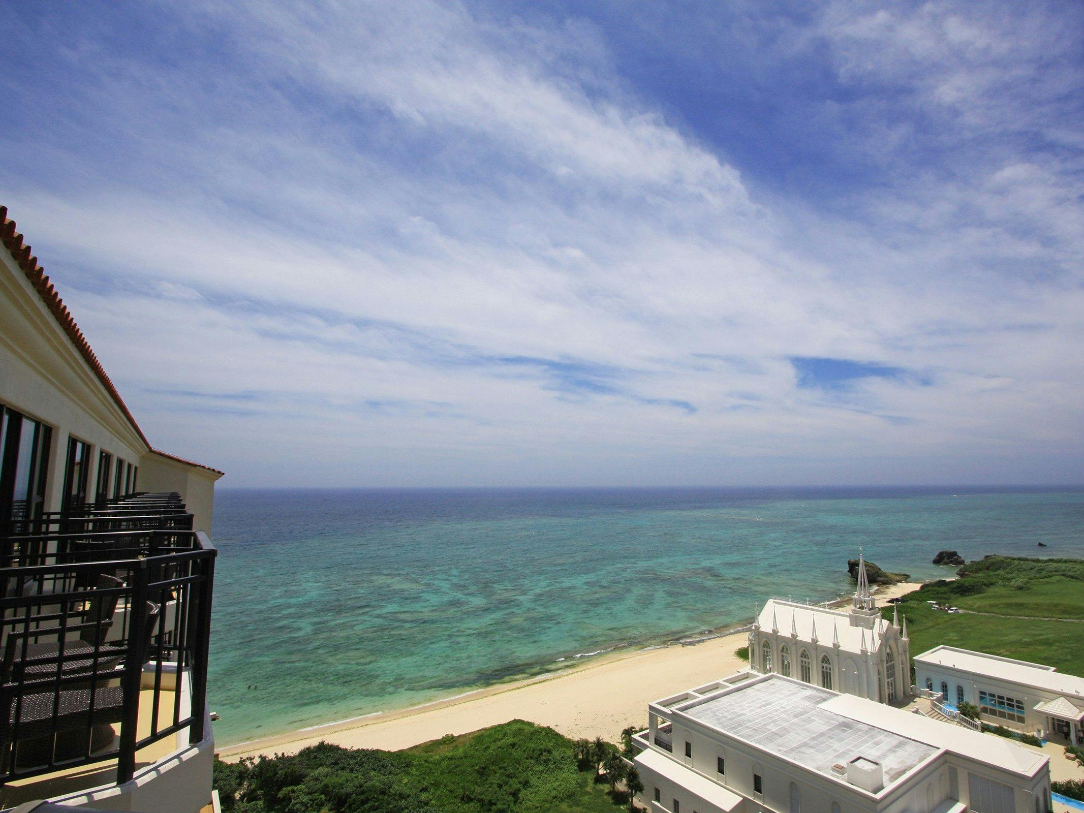 海の正面に位置するビーチリゾート感たっぷりの眺望と、オキナワンブルーを
