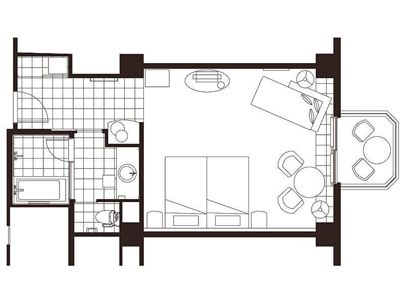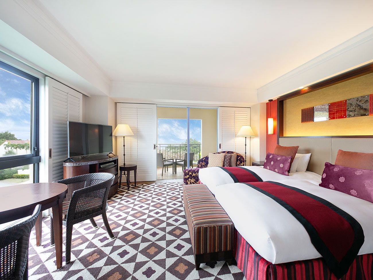 南国の眩しい太陽のイメージや、スペインの鮮やかなタイルをモチーフにした明るいデザインの客室