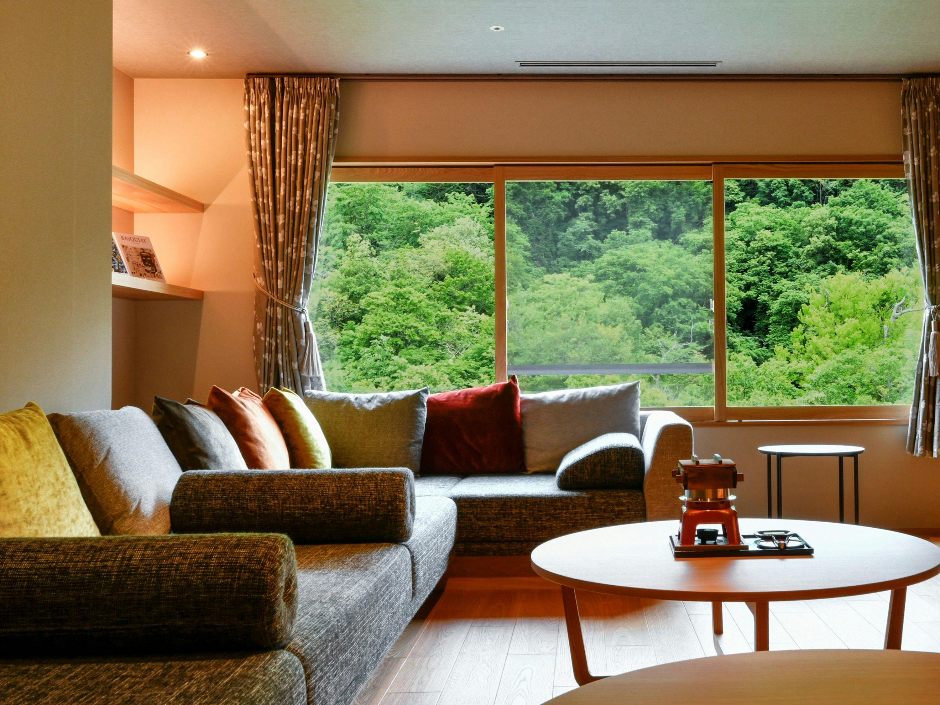客室最上階から望む国立公園の山々と、細やかなおもてなしにあふれた上質なぬくもりに包まれて下さい。