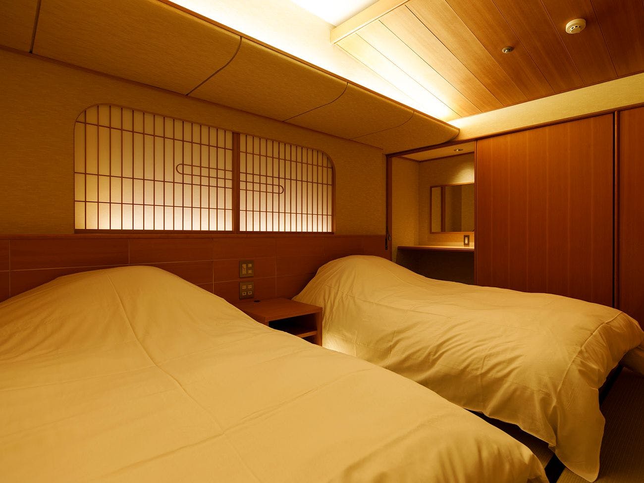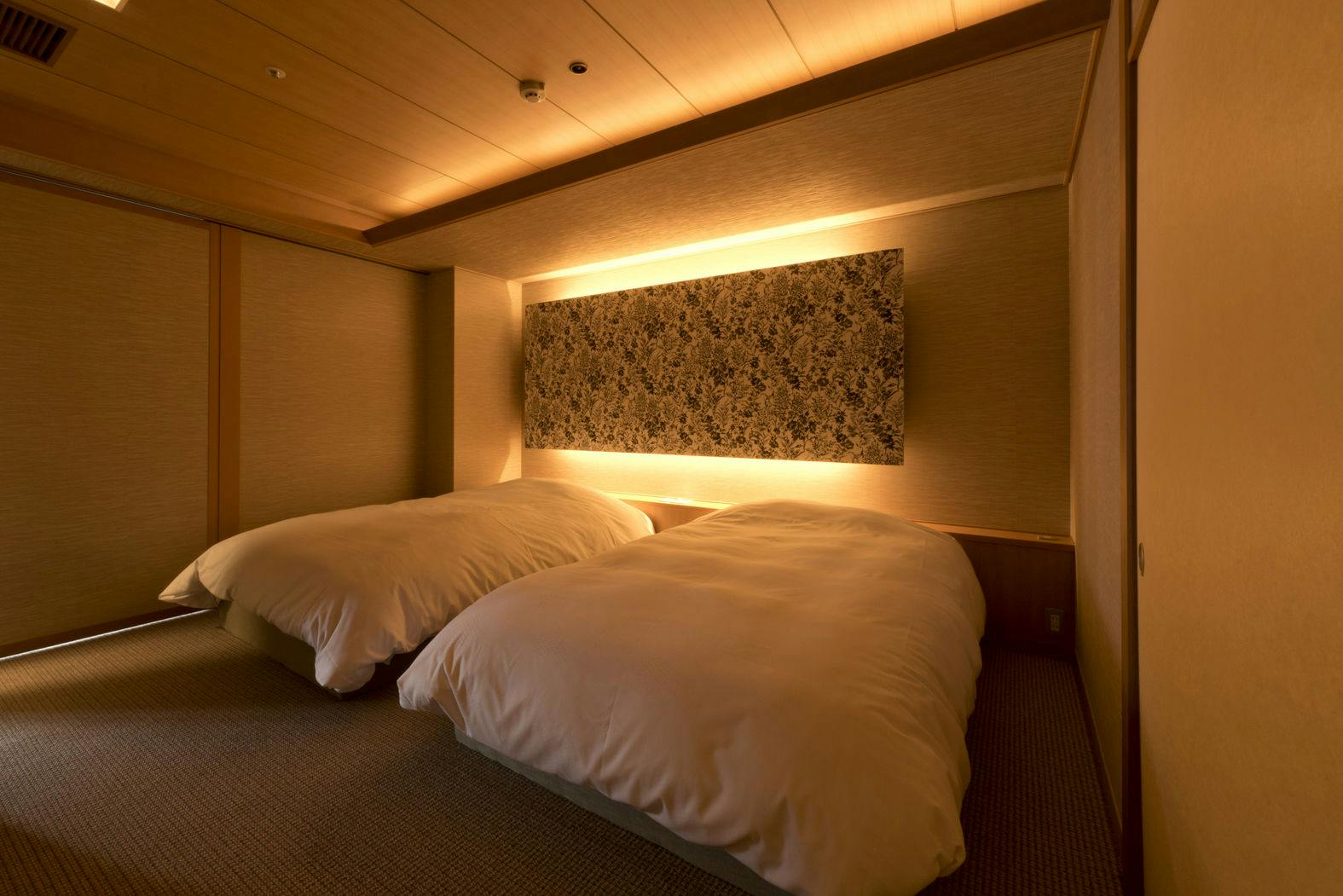 全室にツインベットを設置し、高反発マットレスパッド「エアウィーヴ」を採用。