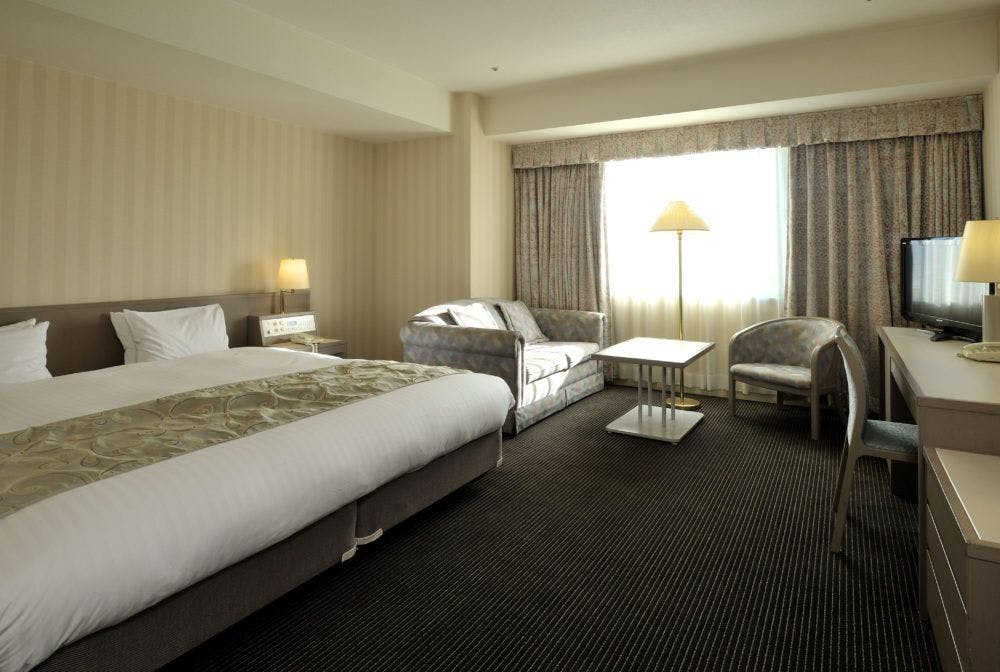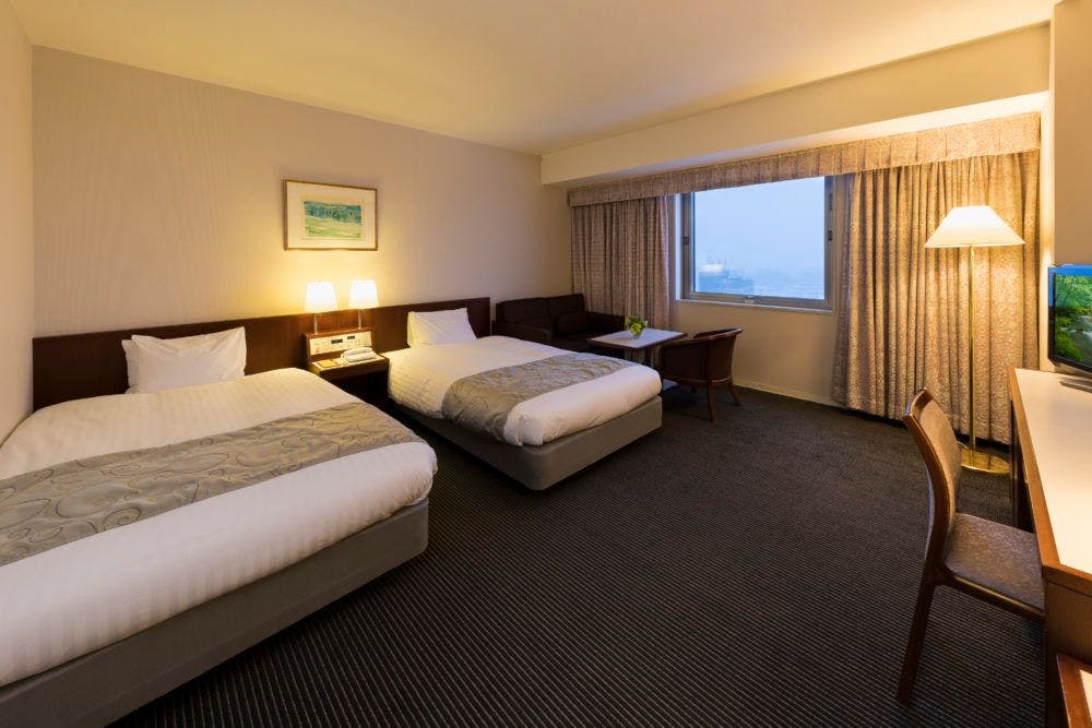 お部屋の広さは32平米のゆったり仕様、小さなお子様の添い寝も安心です。大きなダブルベッドでゆっくりお休みください。全室山側に位置しておりますので、窓からは青森市街の夜景がお楽しみいただけます。