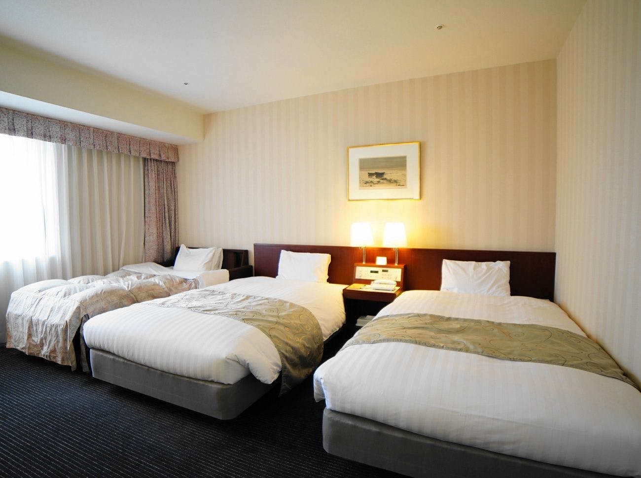 30平米のツインベッドルームにエキストラベッドを1台設置したお部屋になります。