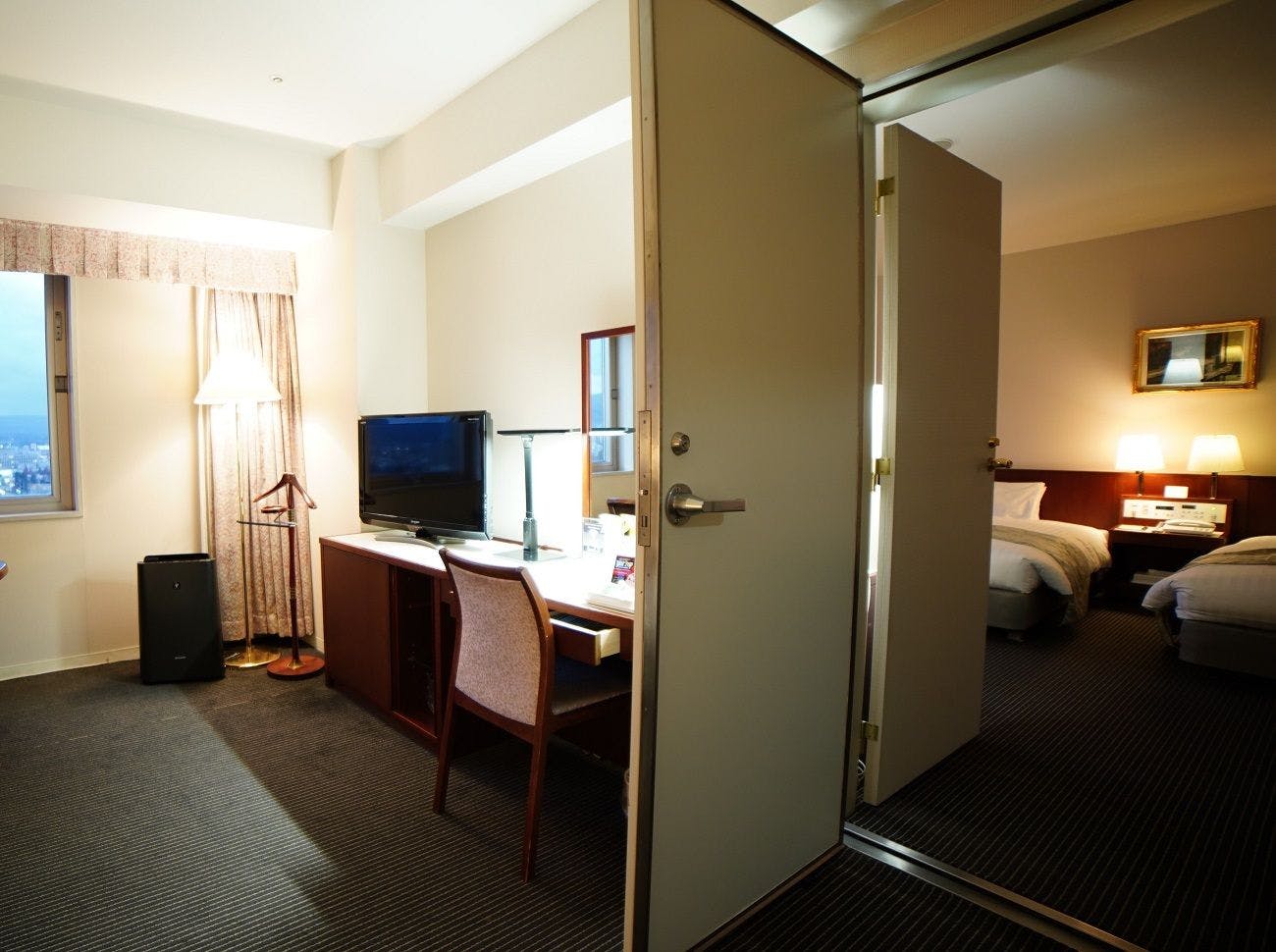 お部屋の広さ33平米の八甲田山側のツインルーム2室が内扉でつながったお部屋です。