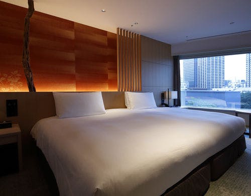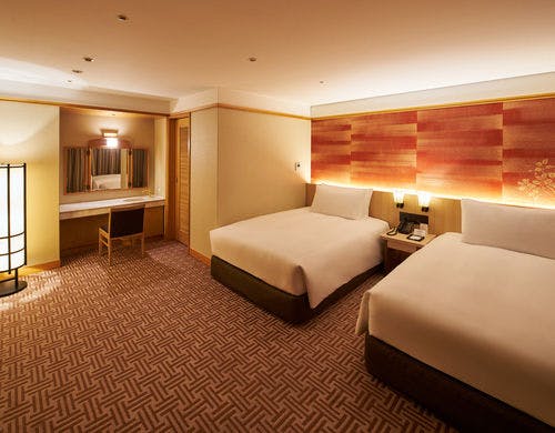 客室自体を茶室に、そこに通じる廊下とエレベータホールを茶庭と見立てたデザインは、この度新コンセプトとして掲げた「和敬清心」※をテーマとし、茶室のわびさびに代表される精神性、自然への思いや、光の演出など現代のスタイルでデザインに反映させた造りになっています。