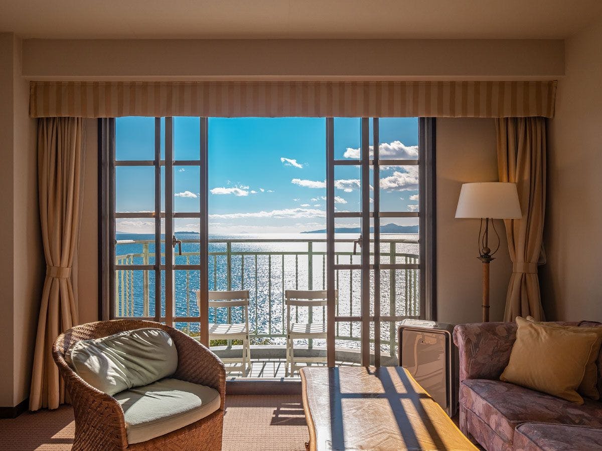 最上階のお部屋からは全面海のオーシャンフロントの景色がお楽しみいただけます。