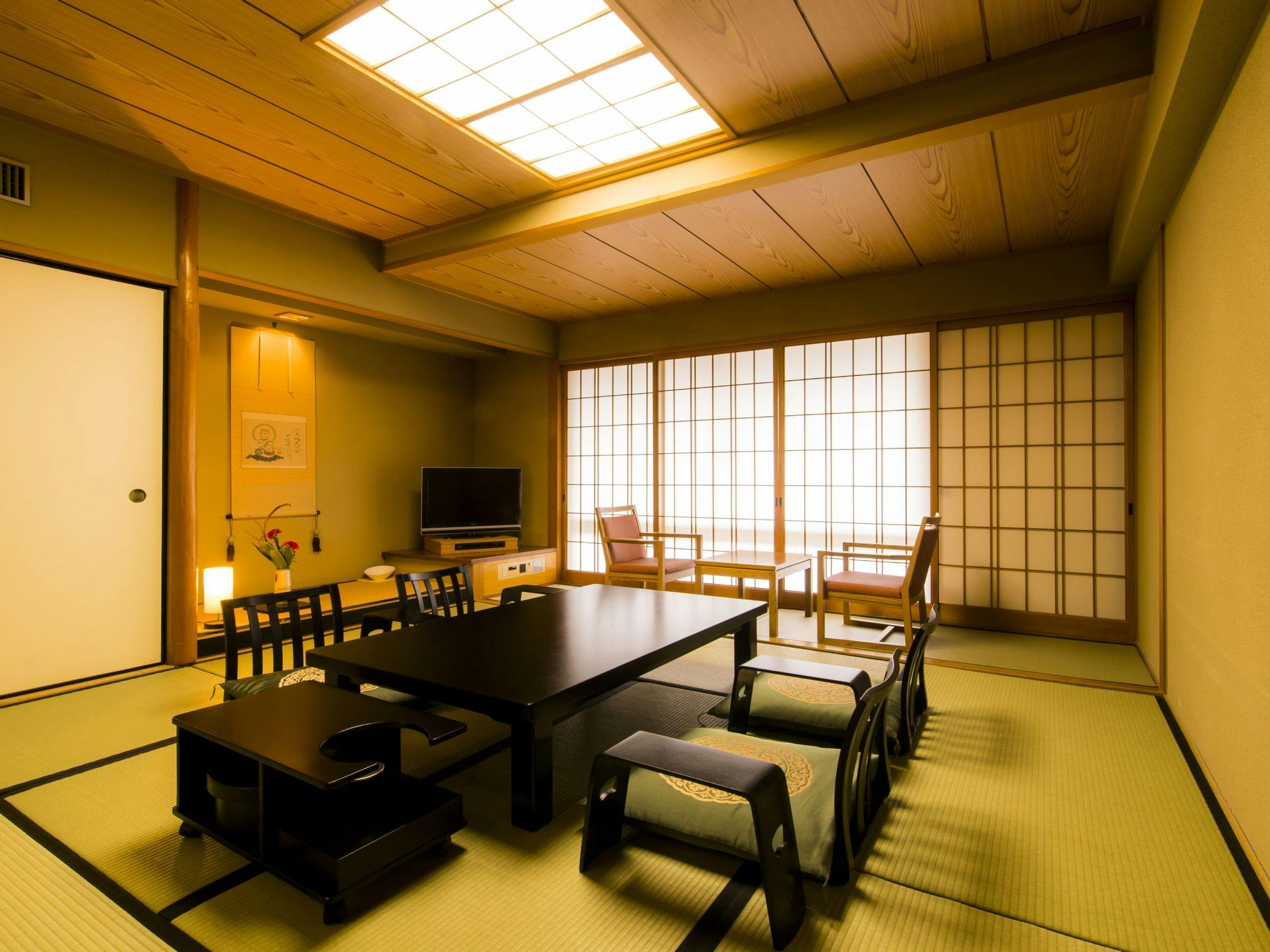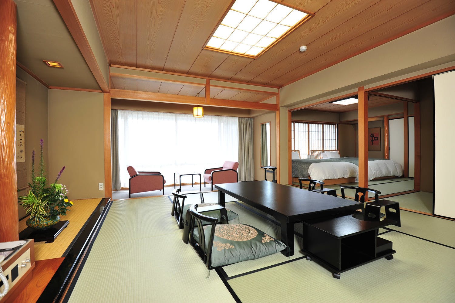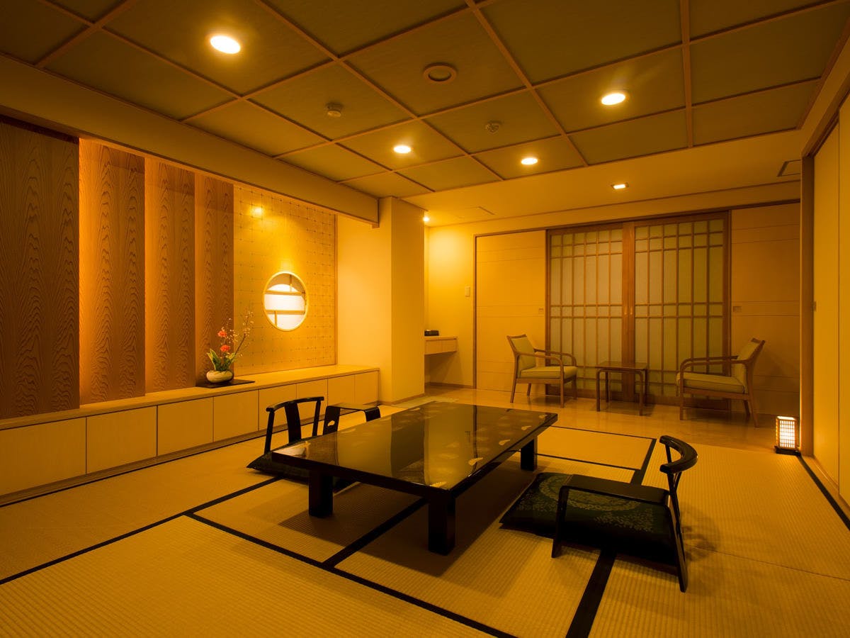 「美味しいものを贅沢に楽しむ」大人旅に最適。「美人の湯」とも呼ばれる清涼感ある天然温泉は、岩風呂や蒸し湯などをもつ「菊湯殿」と、開放感抜群の露天風呂を備える「楠湯殿」があり、男女日替わりで楽しめます。