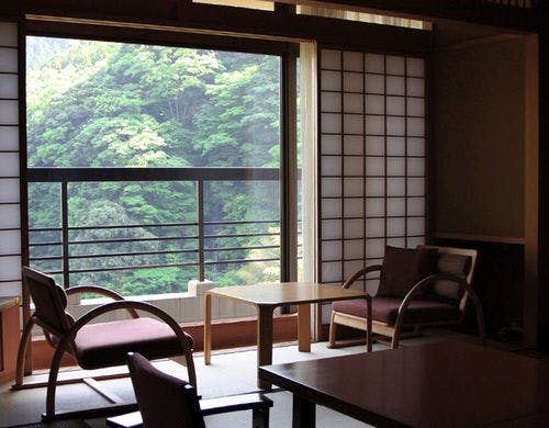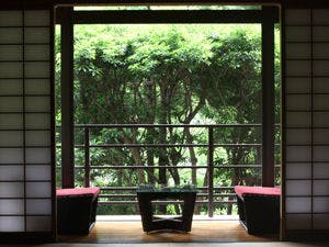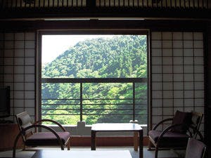 主室には床の間を設け数寄屋風の作りで、障子を開ければ溜息がもれるような万緑の山々。