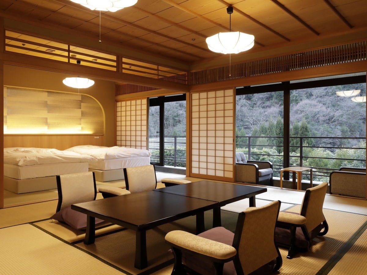 【聚楽第】露天風呂付和室12畳+8畳ベッド付