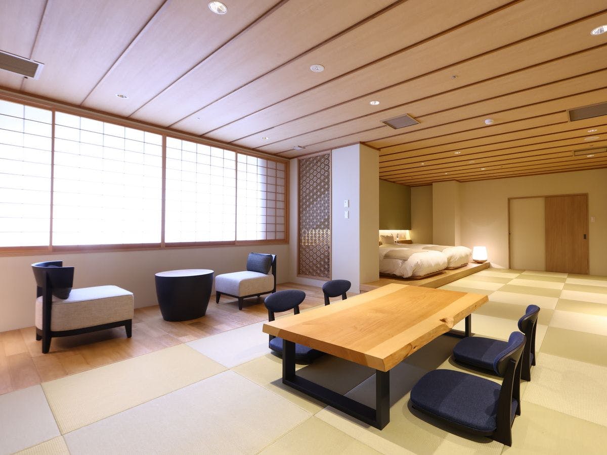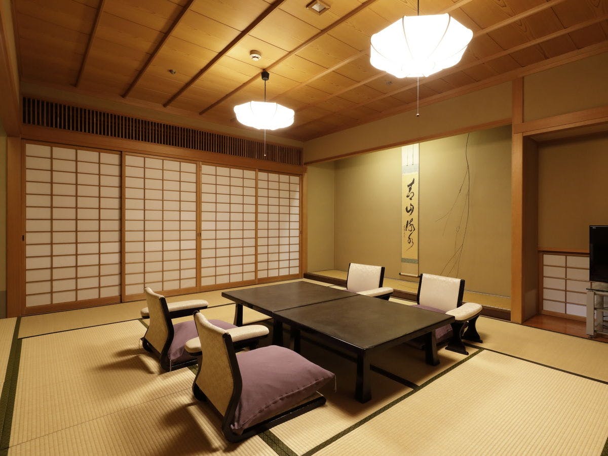 12畳の本間は贅沢な空間だけでなく、しつらえ・調度品も典雅な雰囲気を演出しております。その他、ベッドルームと8畳の次の間がございますので、【憩・食・寝】をそれぞれ使い分けることもできます。