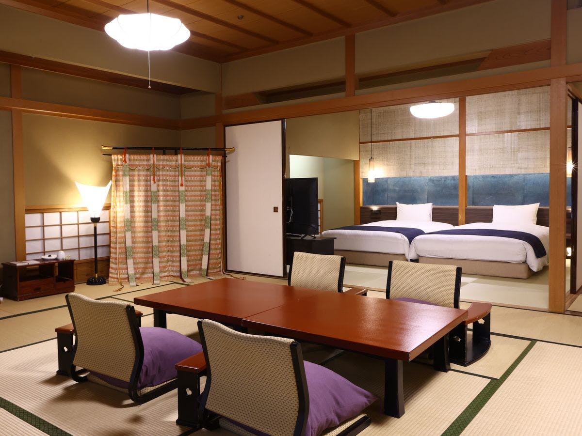 【聚楽第】和室2間(12+8畳)ベッド完備