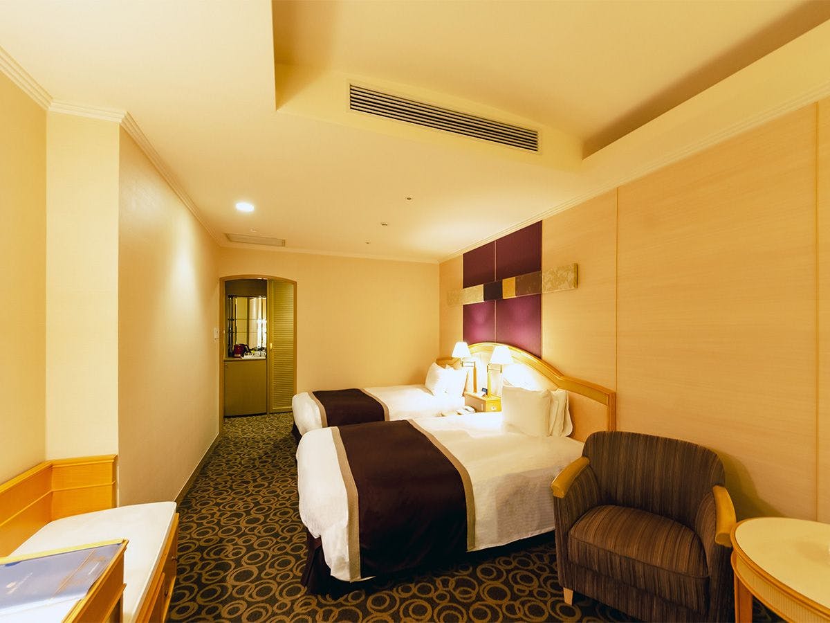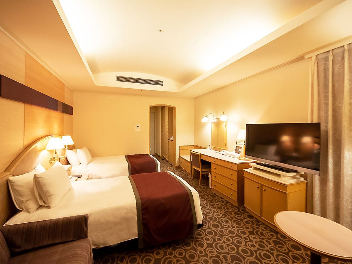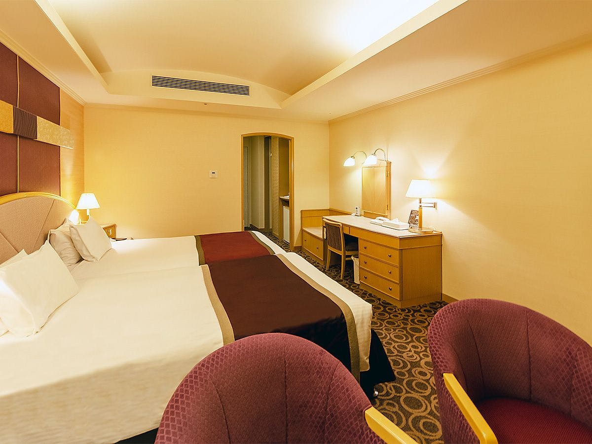 約29平米のお部屋に1,200mmのベッドをご用意したツインルームです。ペアーベッドのご利用で3名様でもご利用いただけます。33階以上の高層階に位置する客室からは東京の夜景をお楽しみいただけ、くつろぎの空間を彩ります。※一部のお部屋ではマッサージチェアのご用意はいたしておりません。あらかじめご了承ください。
