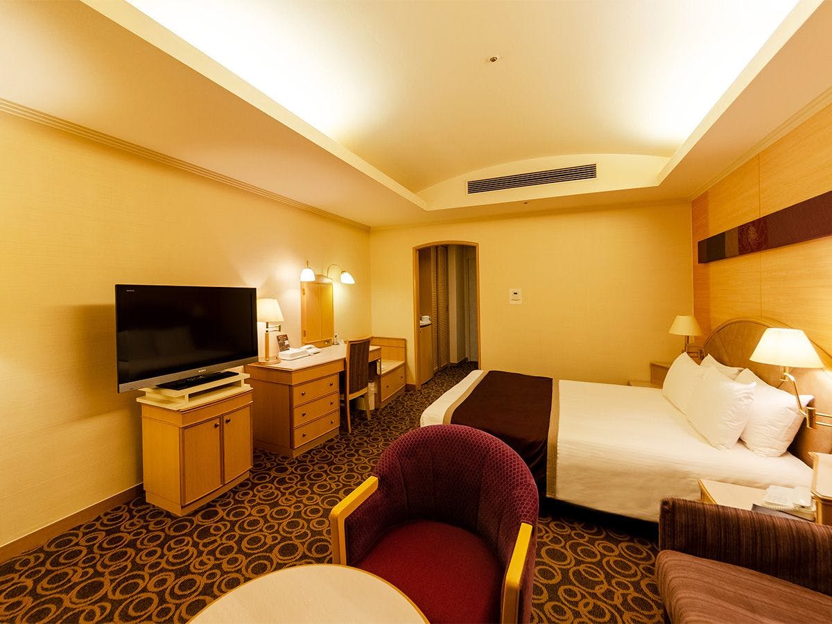 約62平米のゆったりとしたお部屋に1,500mmのベッドをご用意したお部屋です。33階以上の高層階に位置する客室からは東京の夜景をお楽しみいただけます。※一部のお部屋ではマッサージチェアのご用意はいたしておりません。あらかじめご了承ください。