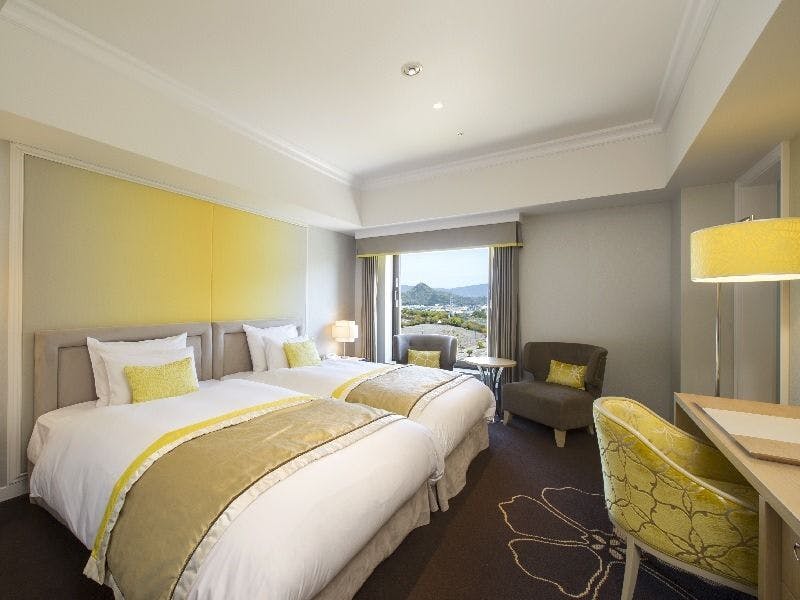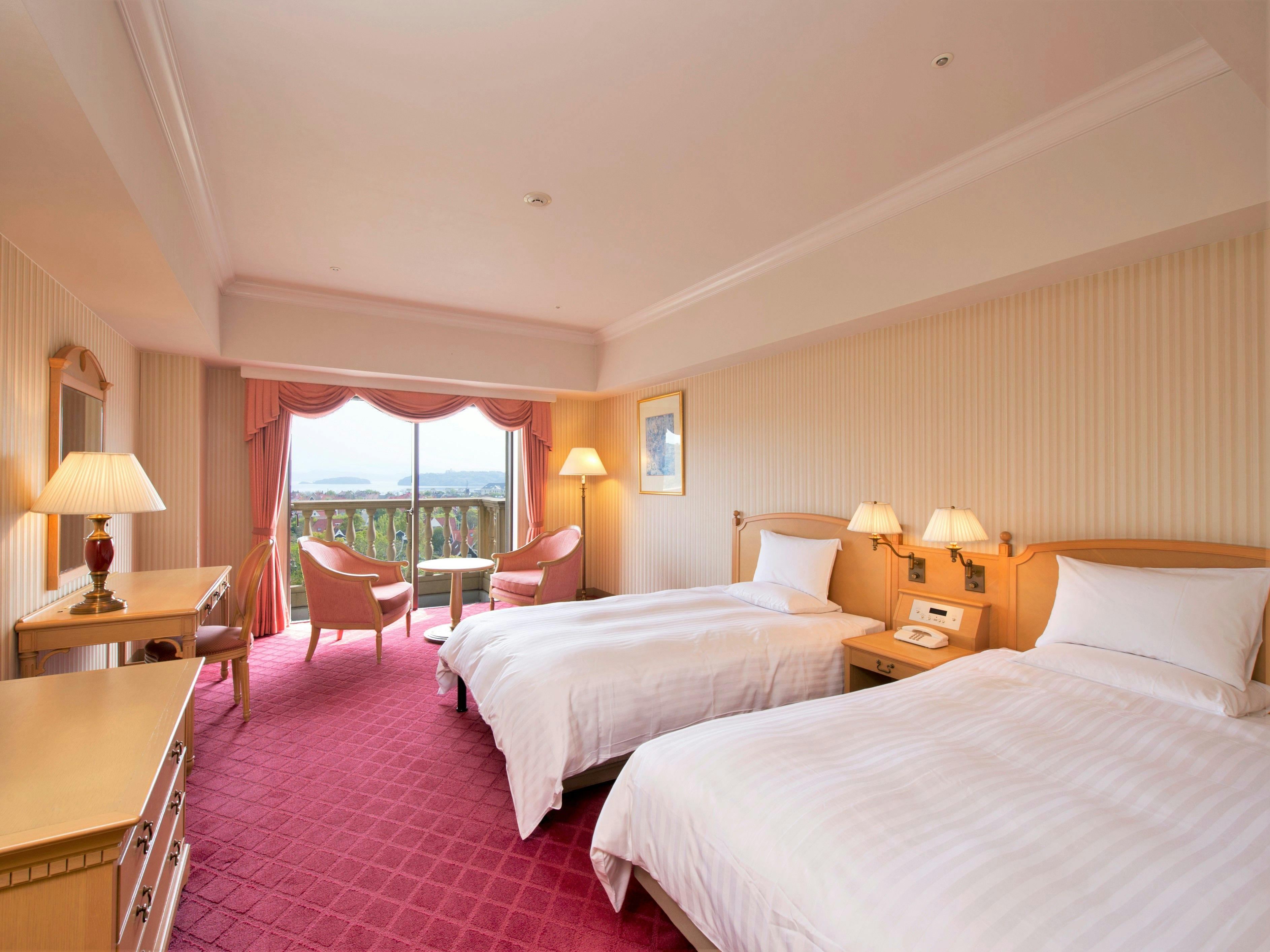 波静かな大村湾とヨーロピアンな街並みを望む7~9階のお部屋です。
