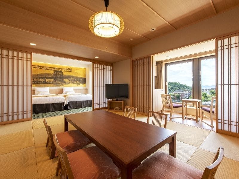 4名様専用、波静かな大村湾とヨーロピアンな街並みを望むハウステンボス側のお部屋です。